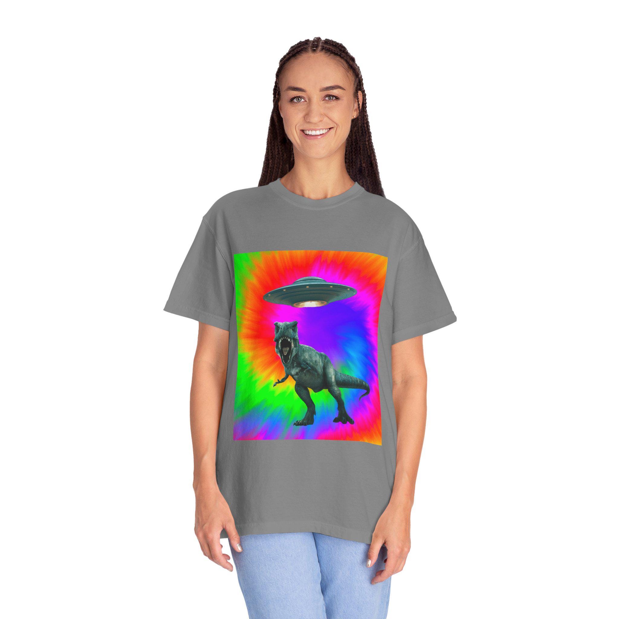 Introducing our vibrant Unisex Garment-Dyed T-shirt! This unique tee showcases a dazzling design that combines a playful dinosaur with a galactic twist—perfect for those with a zest for the whimsical and a love for all things retro. Each shirt is crafted from high-quality, soft ring-spun cotton, ensuring a cozy fit whether you're at a casual gathering or a unique themed party. With a relaxed fit and classic crew neckline, it's the go-to option for both men and women who appreciate creativity in their wardrobe.