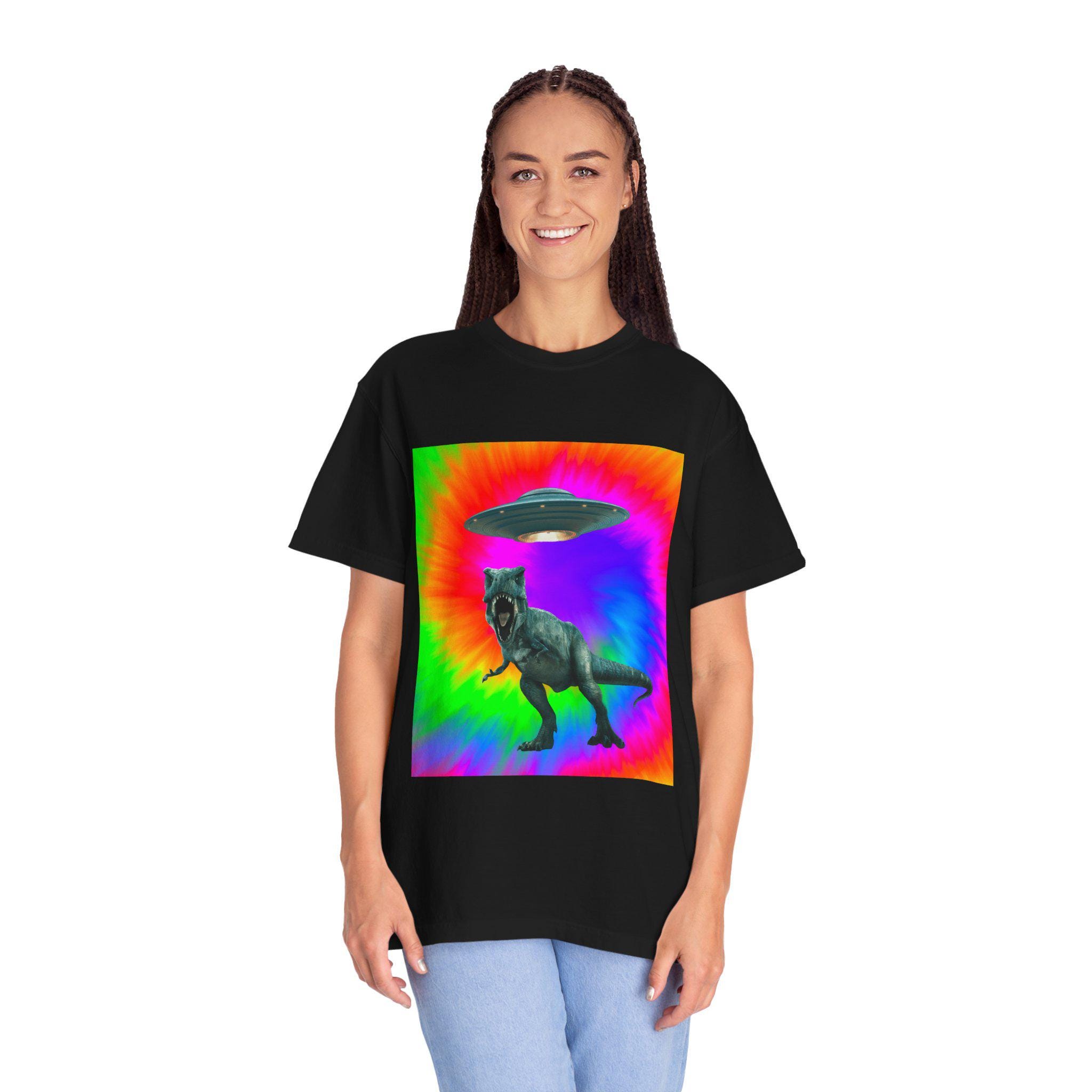 Introducing our vibrant Unisex Garment-Dyed T-shirt! This unique tee showcases a dazzling design that combines a playful dinosaur with a galactic twist—perfect for those with a zest for the whimsical and a love for all things retro. Each shirt is crafted from high-quality, soft ring-spun cotton, ensuring a cozy fit whether you're at a casual gathering or a unique themed party. With a relaxed fit and classic crew neckline, it's the go-to option for both men and women who appreciate creativity in their wardrobe.