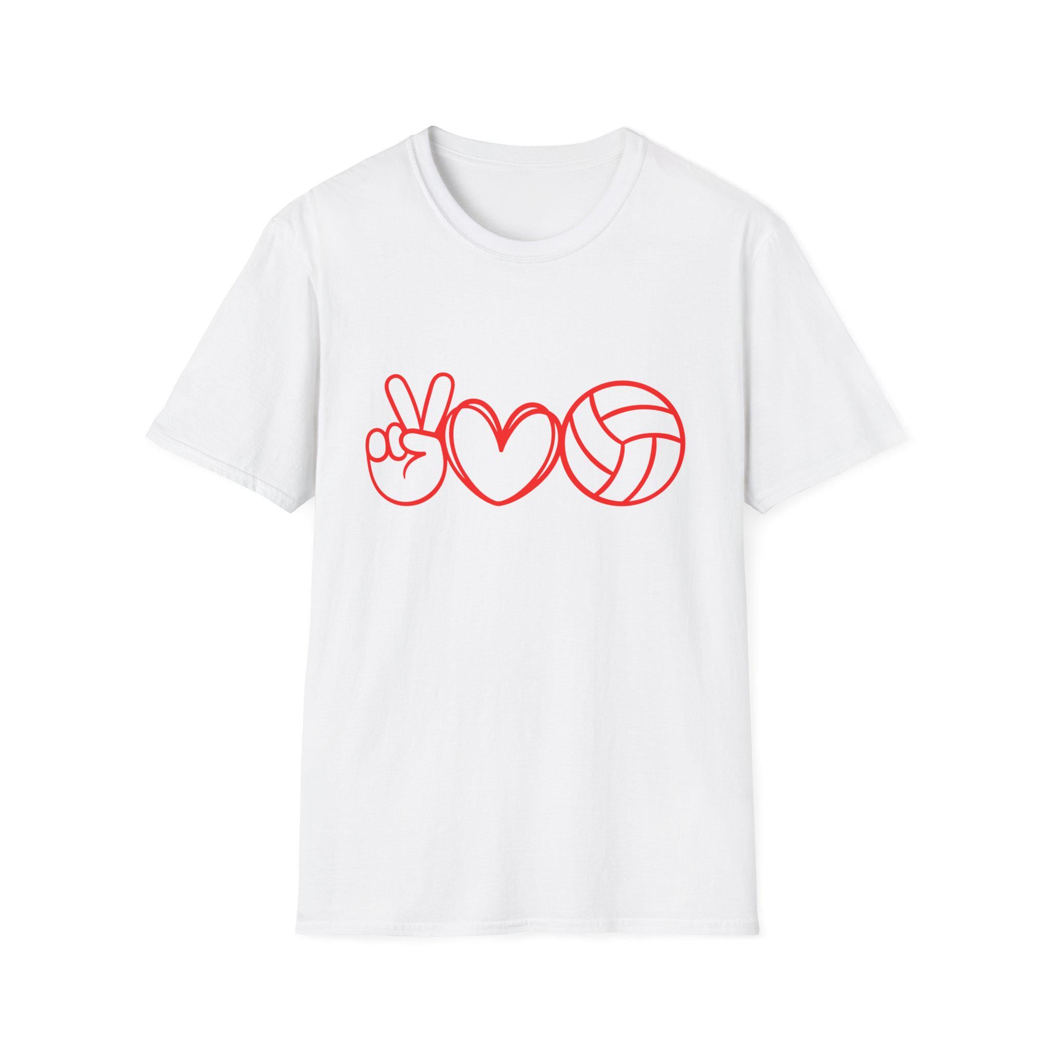 This peace love volleyball t-shirt with red print exudes a casual and sporty vibe, perfect for volleyball enthusiasts and players. It can be worn during volleyball games, practice sessions, or even as everyday casual wear. Ideal for volleyball fans and athletes, this t-shirt is a great addition to your wardrobe, especially during volleyball tournaments and championships.