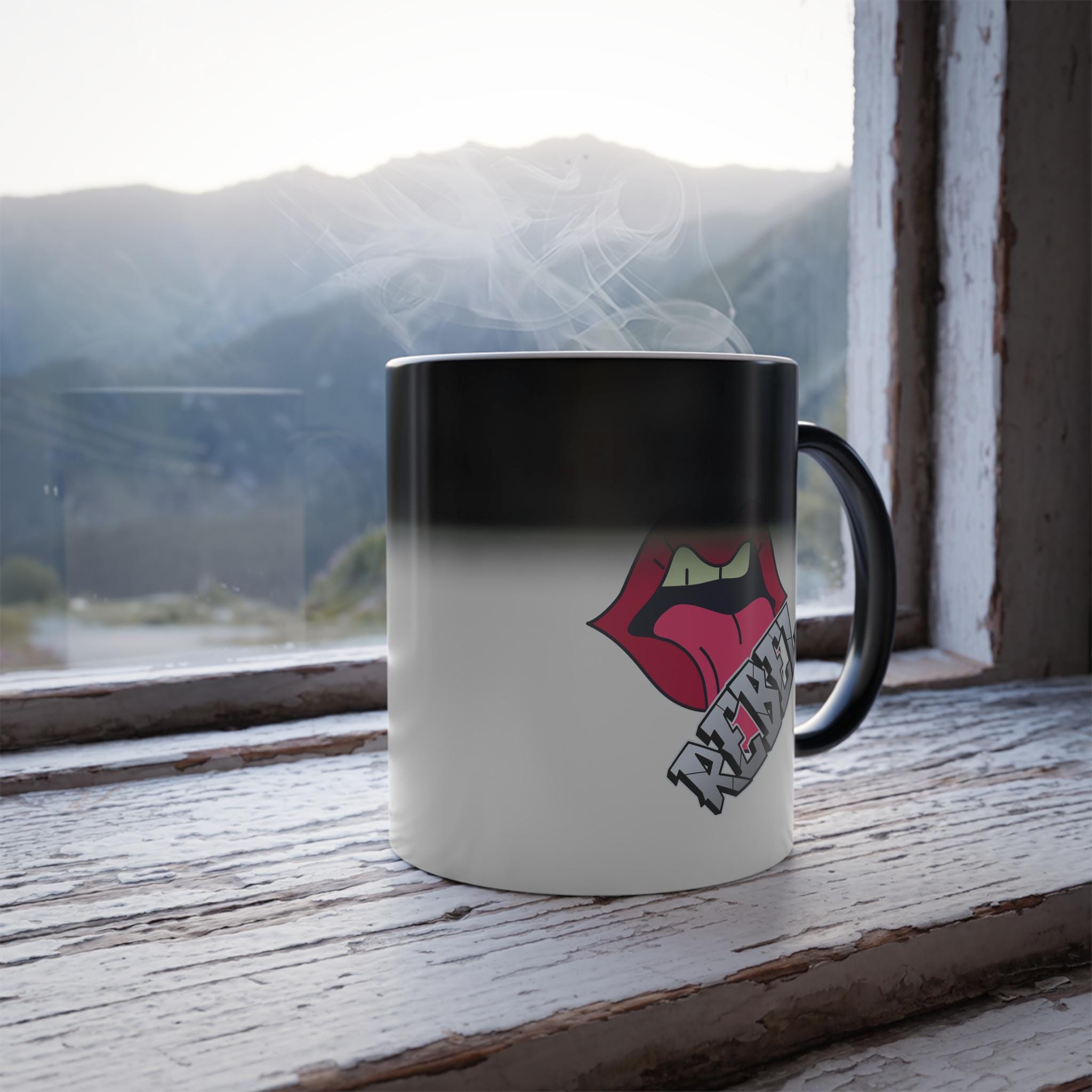 Express your inner rebel with this color morphing mug featuring a left-handed rebel with a rock and roll mouth design. Perfect for those who enjoy a little edginess in their morning routine, and a fun addition to any coffee or tea lover's collection. Ideal for birthdays, music lovers, and rebellious spirits alike. Get ready to rock your mornings with this heat-sensitive mug!