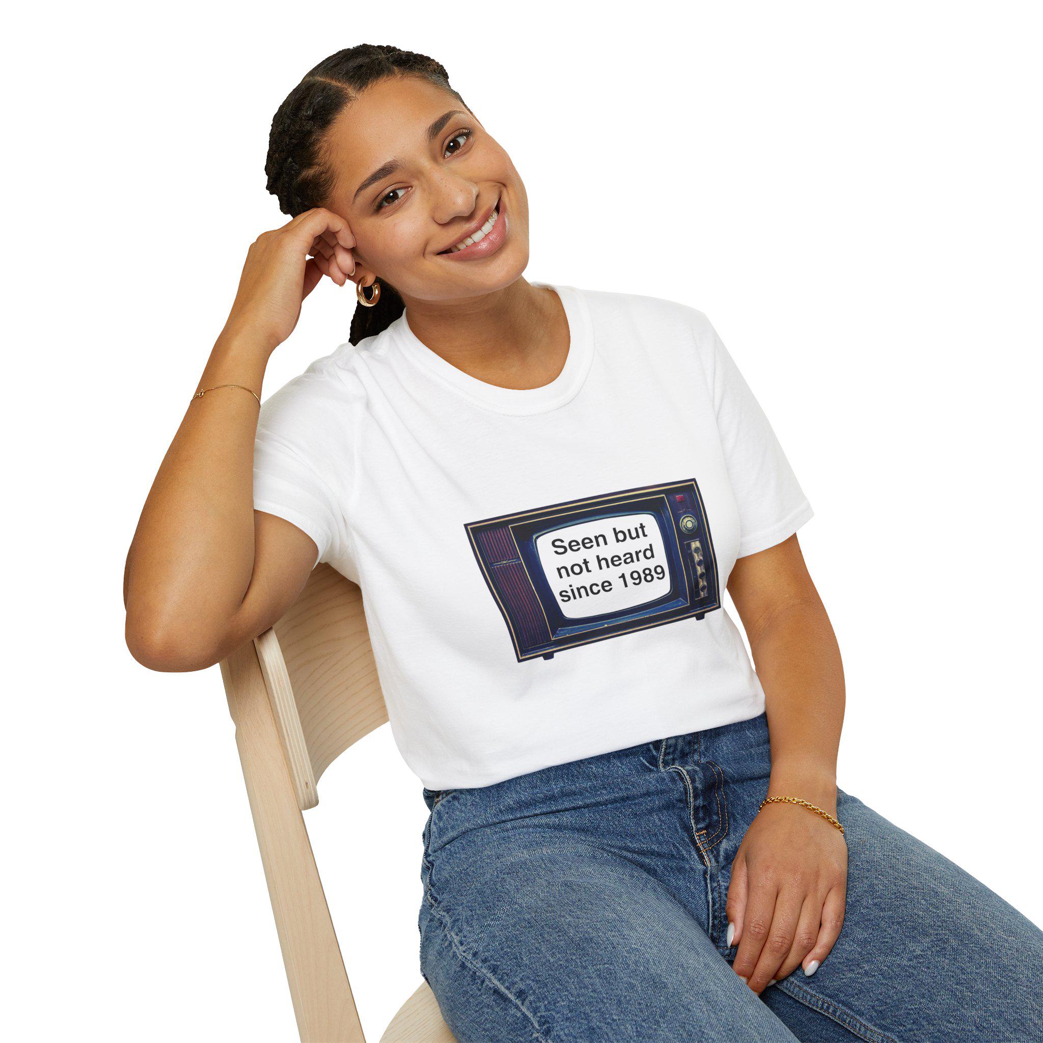 A funny t-shirt perfect for middle children, friends, siblings, and children. The design captures the feeling of being seen but not heard. This unisex softstyle t-shirt is made from 100% ring-spun cotton, providing durability and smoothness. The classic fit and crew neckline make it versatile for any occasion.