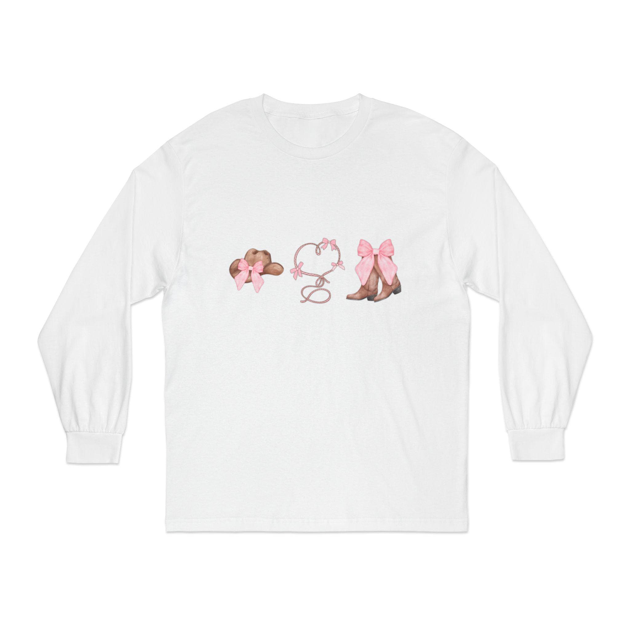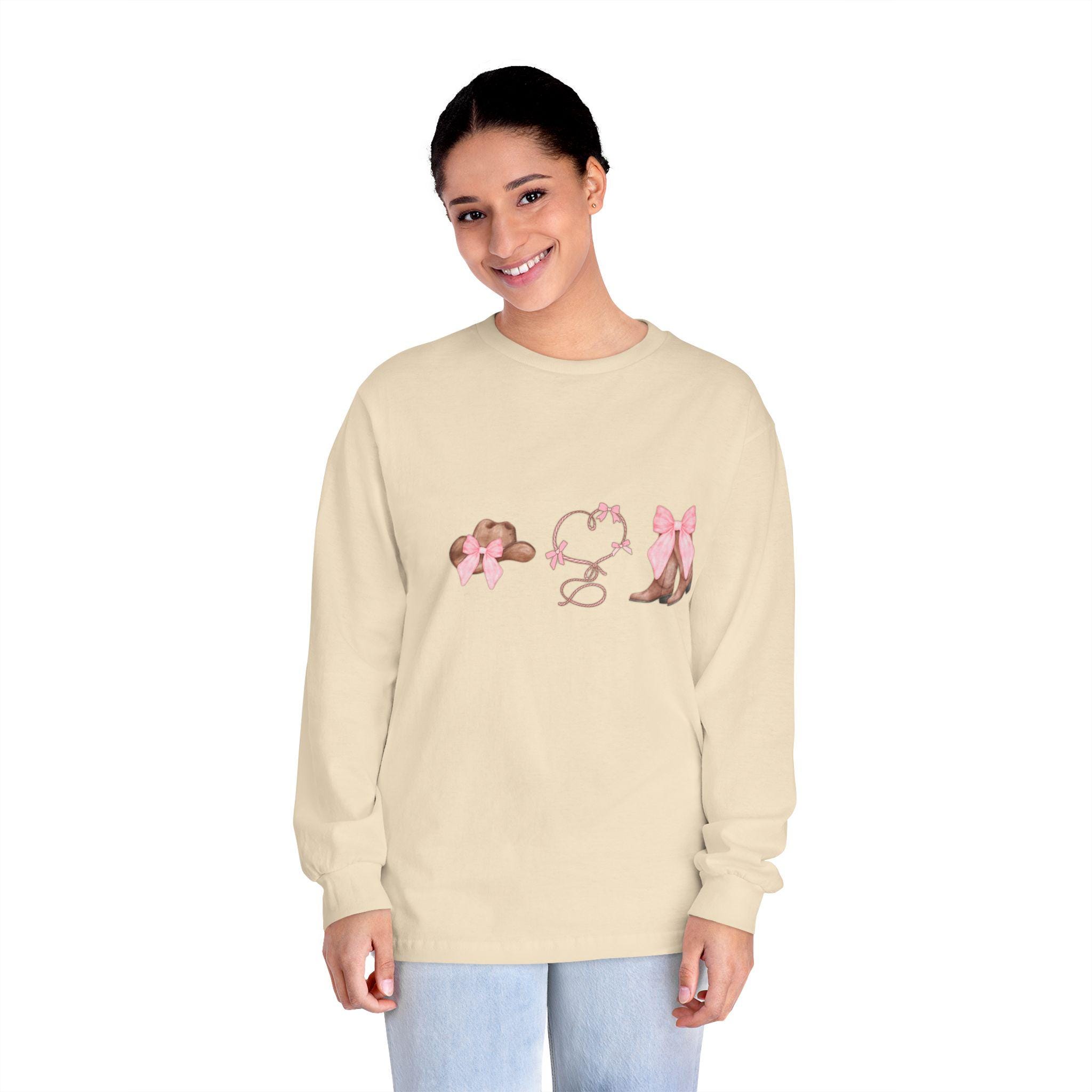Cowgirl coquette design T-Shirt perfect for those who love western style fashion. This classic fit long sleeve T-Shirt is made of 100% US cotton, giving a comfortable and durable feel. The design exudes a playful and charming vibe, making it ideal for country-themed events, rodeos, or western-themed parties.