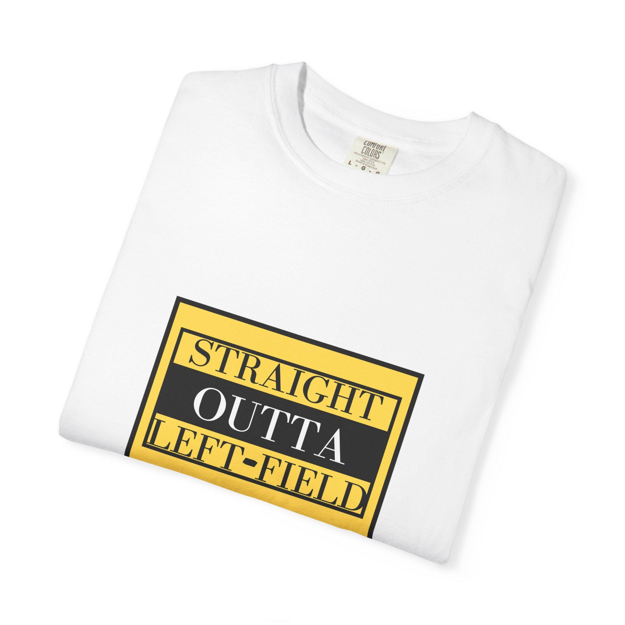 This straight out of left field design T-shirt is perfect for those with left-handed humor. It gives off a quirky and unique vibe, making it a great conversation starter for casual outings. Ideal for adults who enjoy offbeat humor and want to showcase their individuality. Perfect for gifting on birthdays, April Fool's Day, or just to make someone smile.
