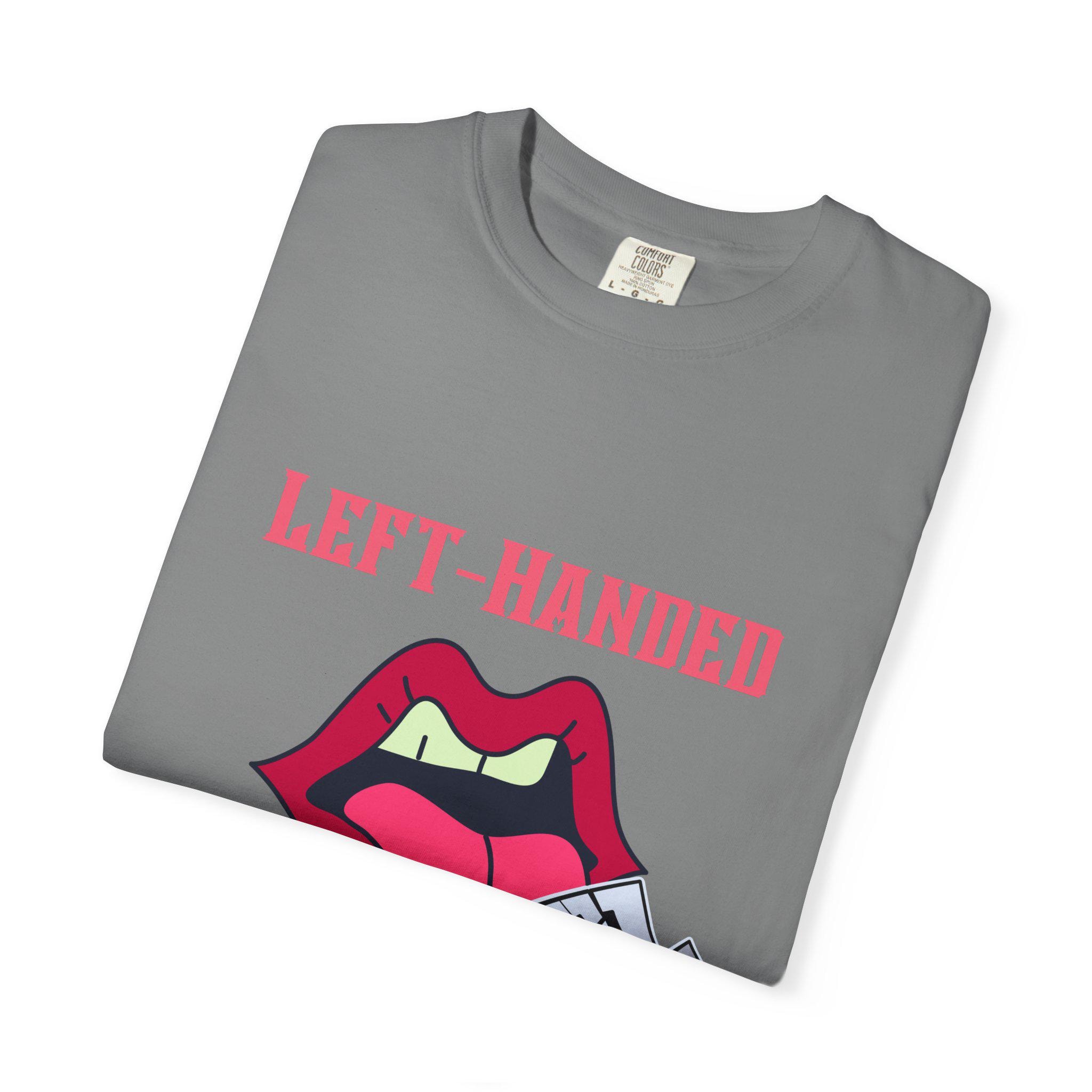 Introducing a comfortable and stylish Unisex Garment-Dyed T-Shirt perfect for those who love expressing individuality and embracing their unique traits. This shirt radiates a relaxed vibe, making it an ideal addition to any casual wardrobe. Its soft, vintage look complements a variety of outfits, whether you're lounging at home, meeting friends for coffee, or attending a laid-back gathering. This t-shirt is particularly relevant for left-handed individuals, celebrating their uniqueness in a fun and fashionable way. Perfect for casual outings and everyday wear, it makes a memorable gift for holidays, birthdays, or just because to friends and family who appreciate a touch of humor in their style.