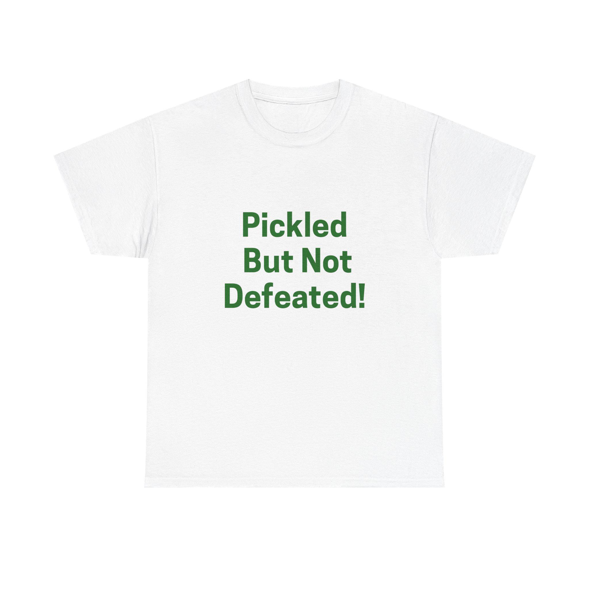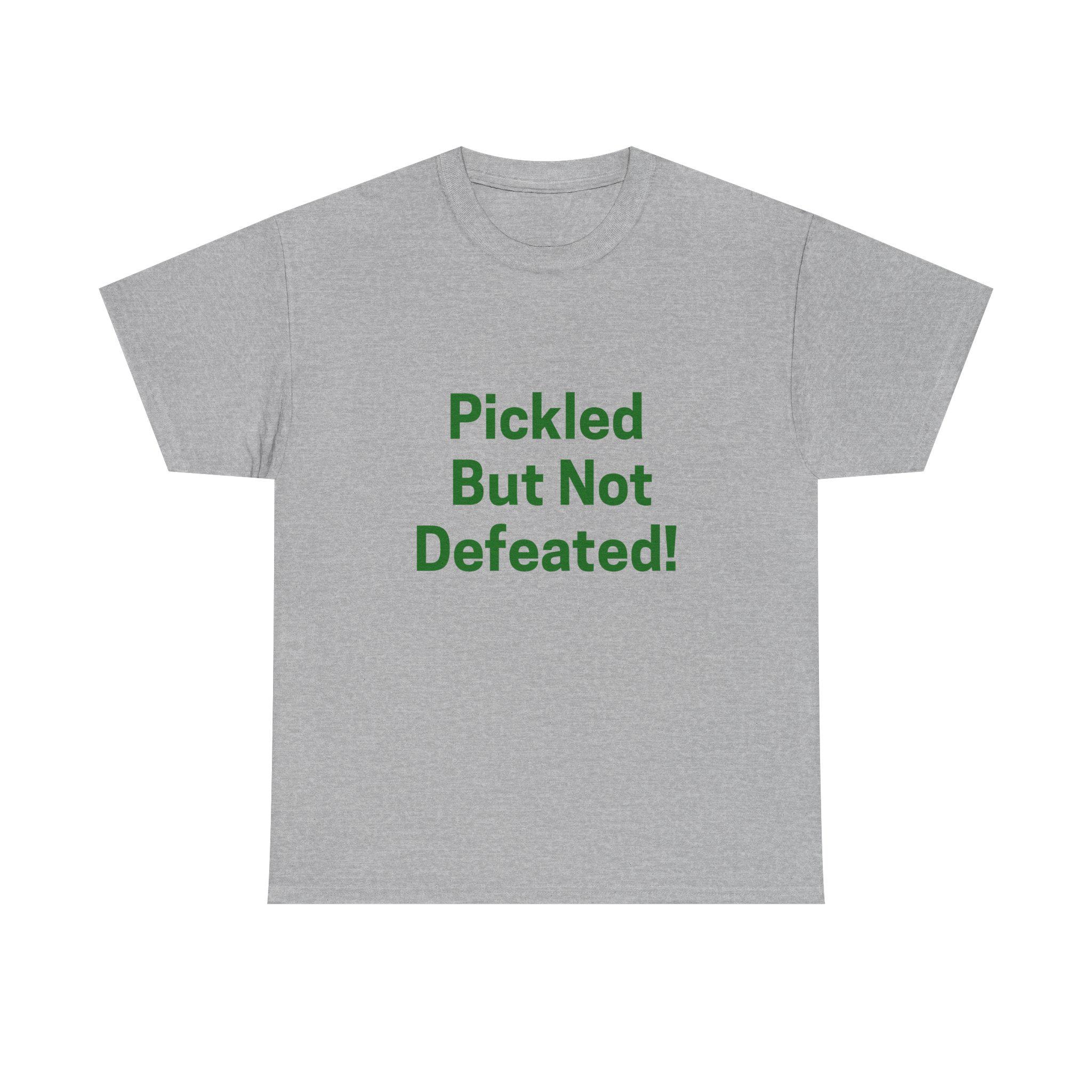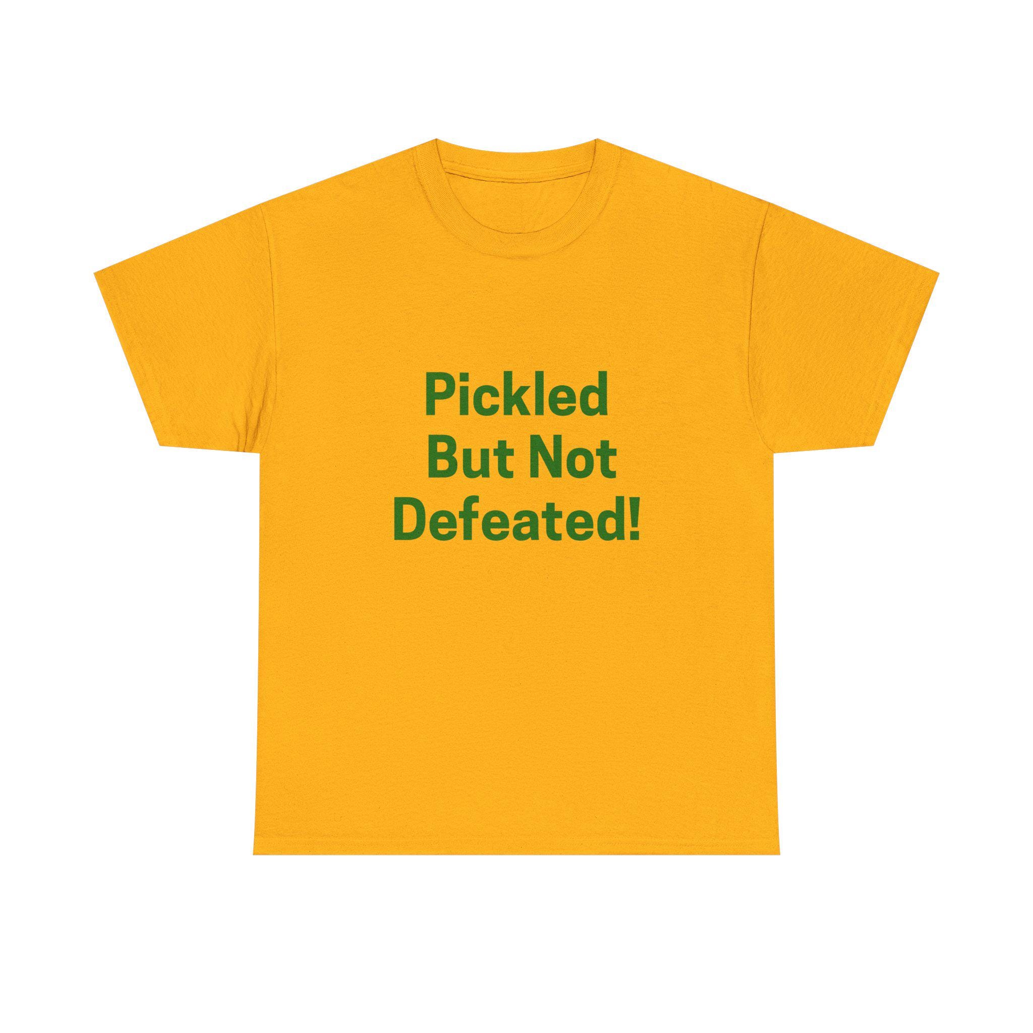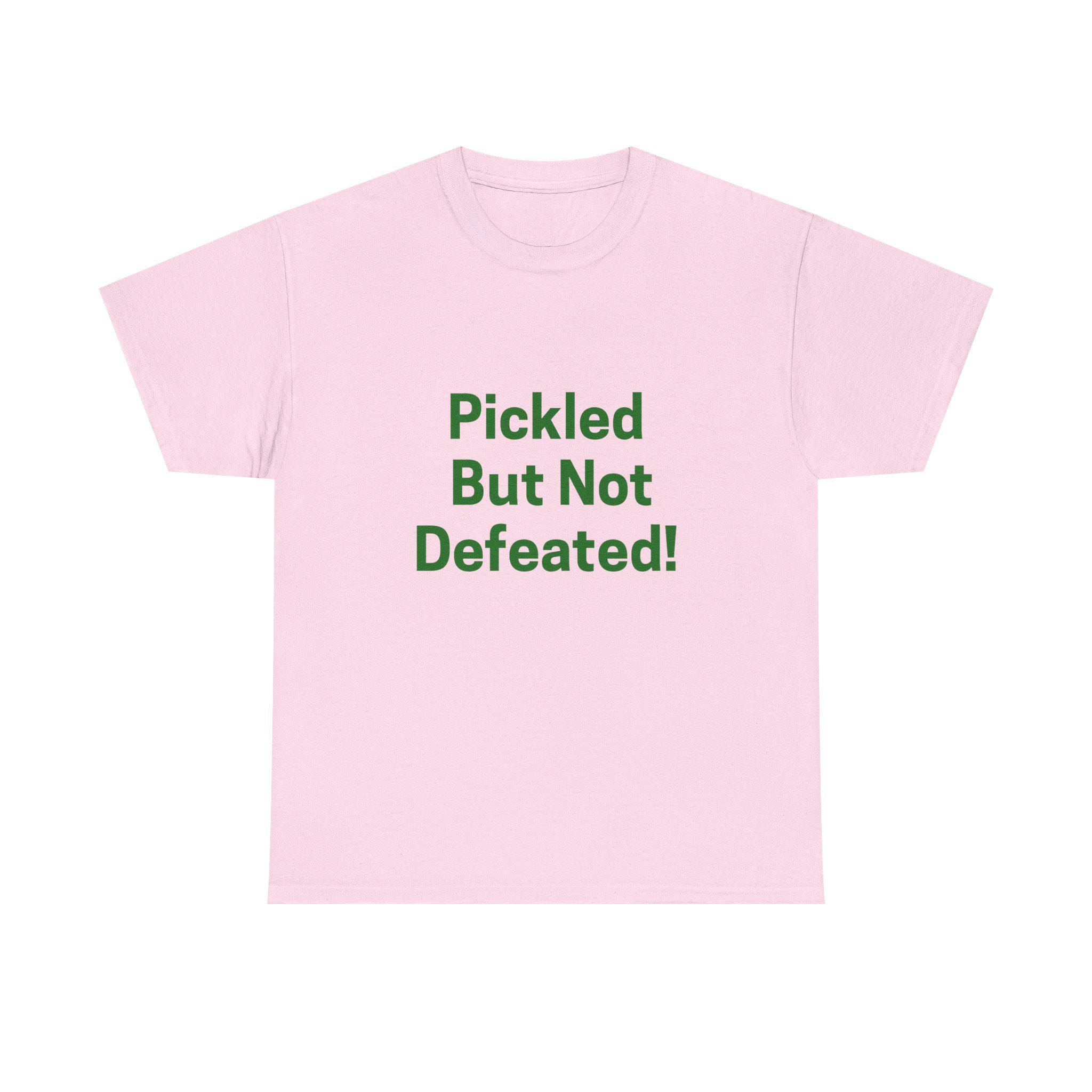 Introducing the perfect Unisex Heavy Cotton Tee that combines comfort with a delightful twist of humor. Featuring the phrase "Pickled, But Not Defeated!" this tee celebrates resilience with a lighthearted vibe. Crafted for those who appreciate a good pun, it suits a variety of occasions — from casual hangouts and picnics to quirky birthday parties and holiday gatherings. It's not just a tee; it's a conversation starter! Ideal for anyone looking to express their fun personality, this shirt makes a great gift for friends or family who love a good laugh. Whether you wear it out or lounge at home, this shirt brings a cheerful vibe and brightens up your day.