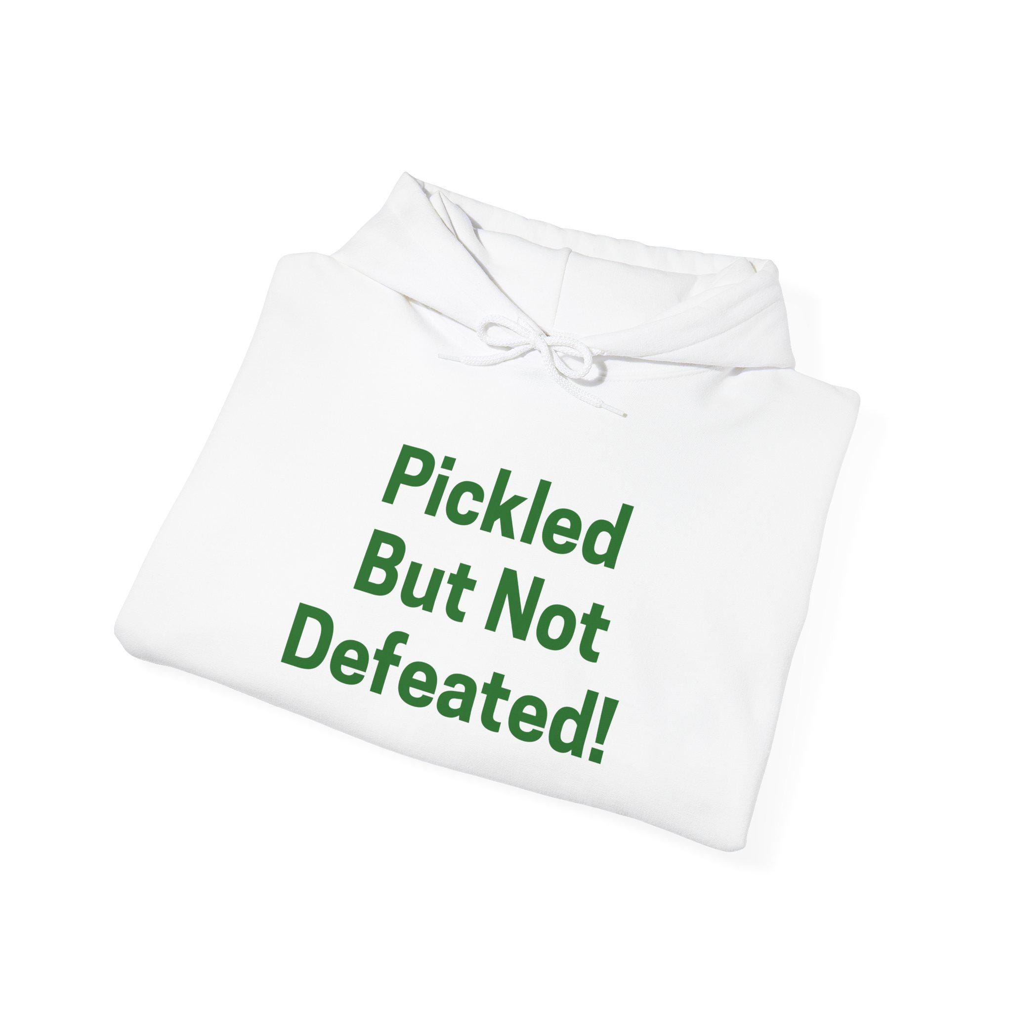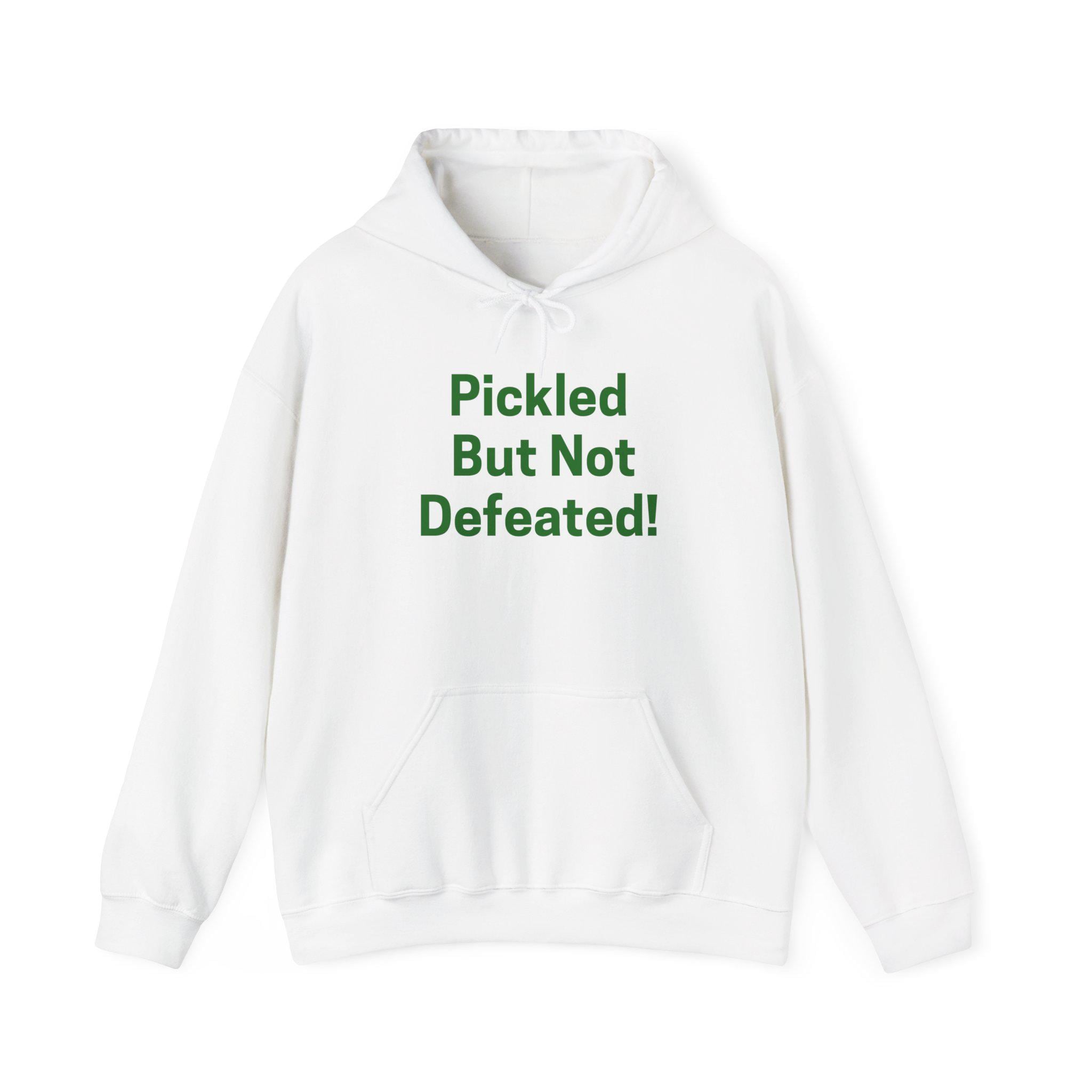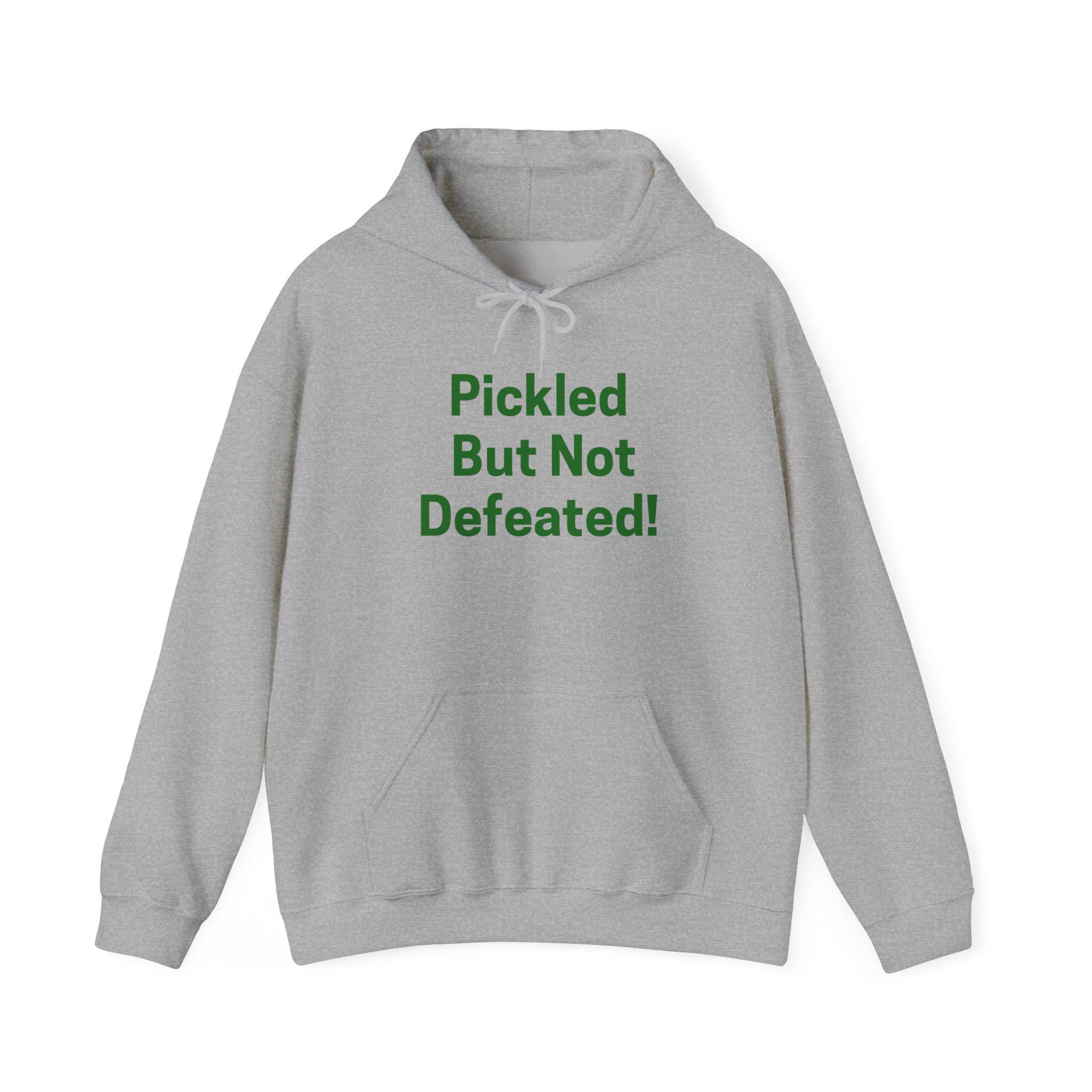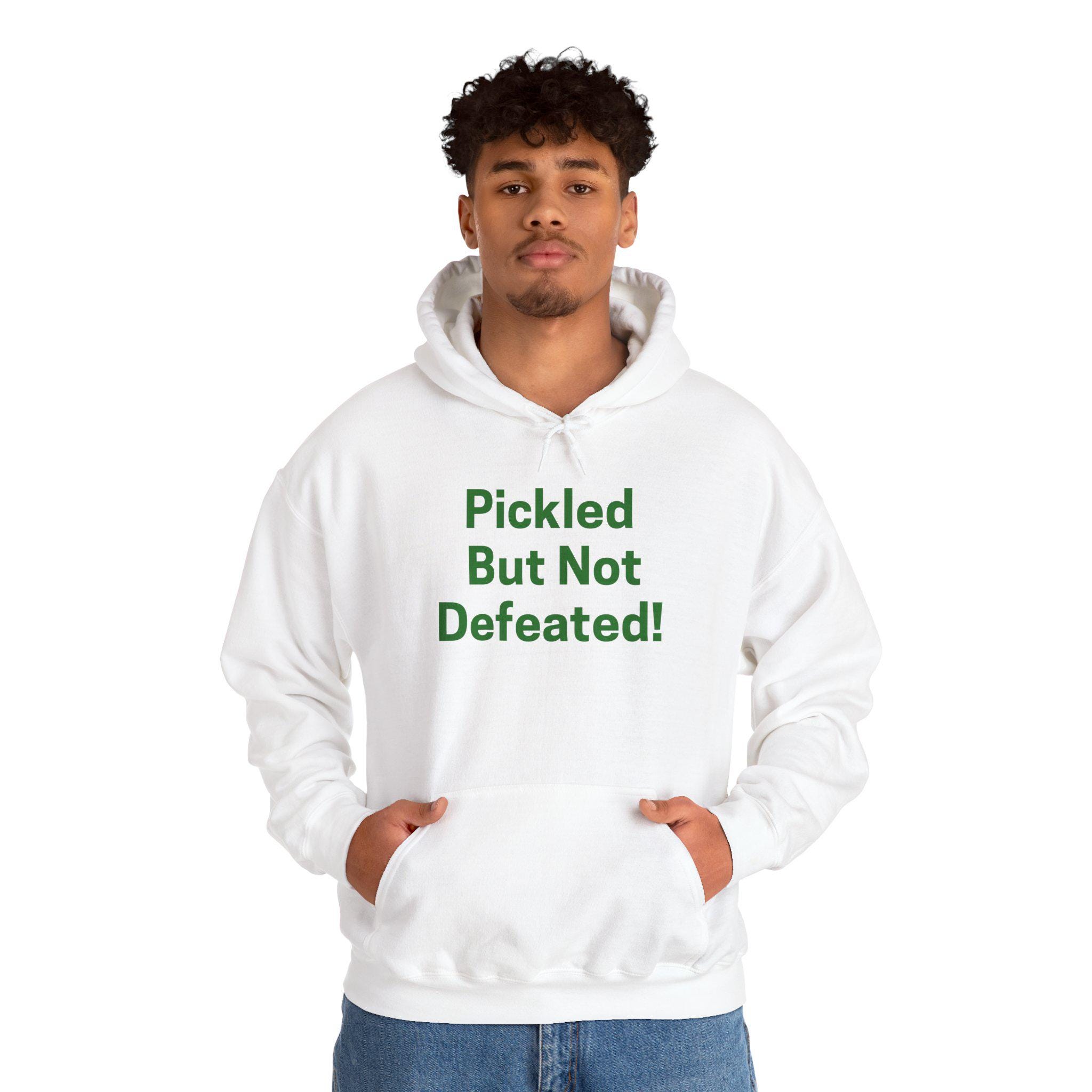 Embrace your unique spirit with this cozy Unisex Heavy Blend™ Hooded Sweatshirt! Featuring an empowering message, "Pickled But Not Defeated!", this sweatshirt radiates positivity and resilience. Perfect for casual outings or lounging at home, it guarantees warmth and comfort in any setting. The spacious kangaroo pocket is perfect for keeping hands warm or stashing small items, while the adjustable drawstring hood offers a personal touch. Targeted for adults, this sweatshirt is an ideal gift for friends or family who appreciate humor and motivation in their wardrobe. It's a great addition for celebrations, family gatherings, or simply treating yourself, making it suitable for holidays like birthdays and cozy winter evenings.