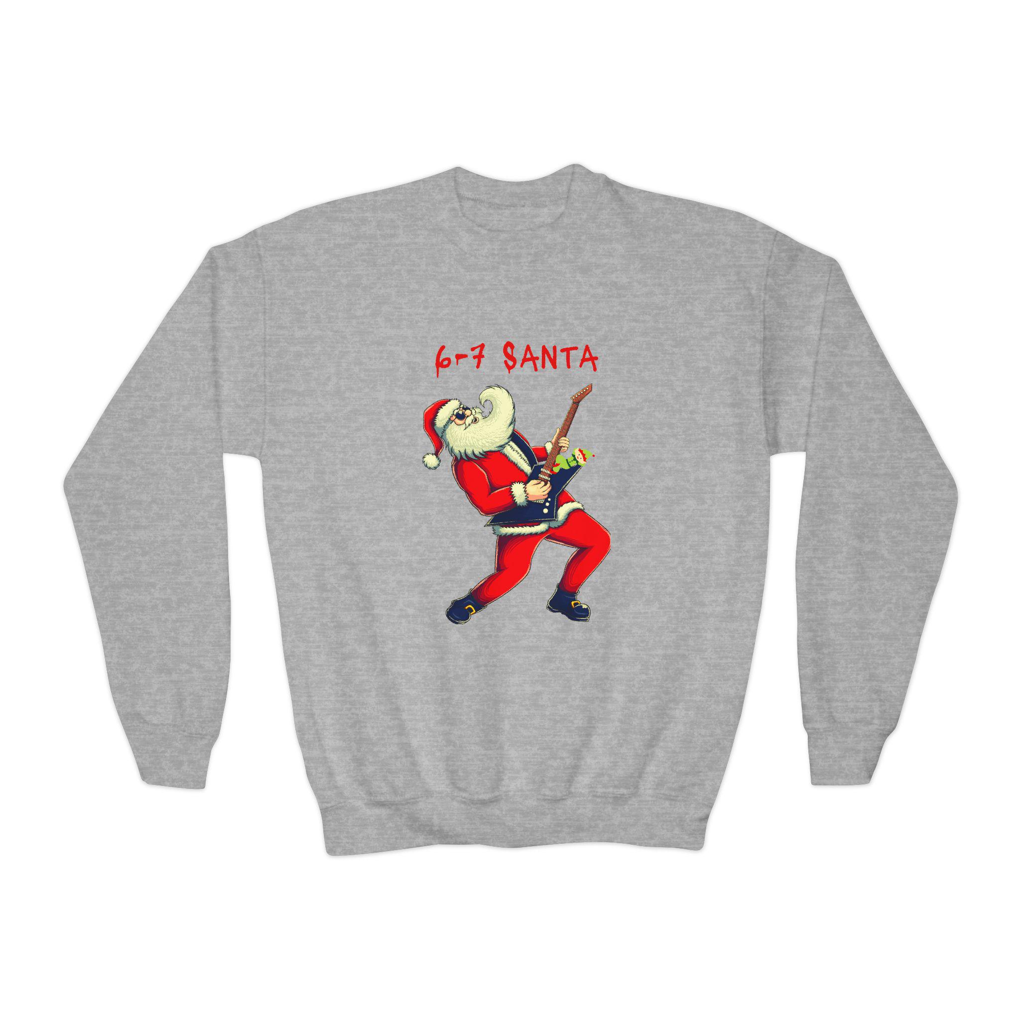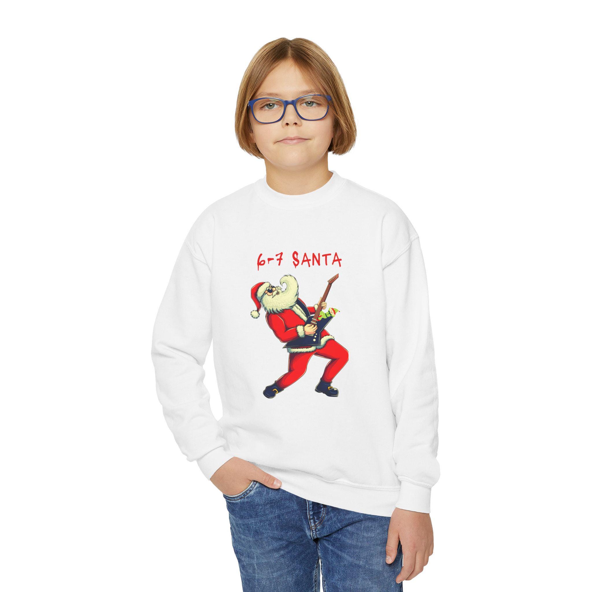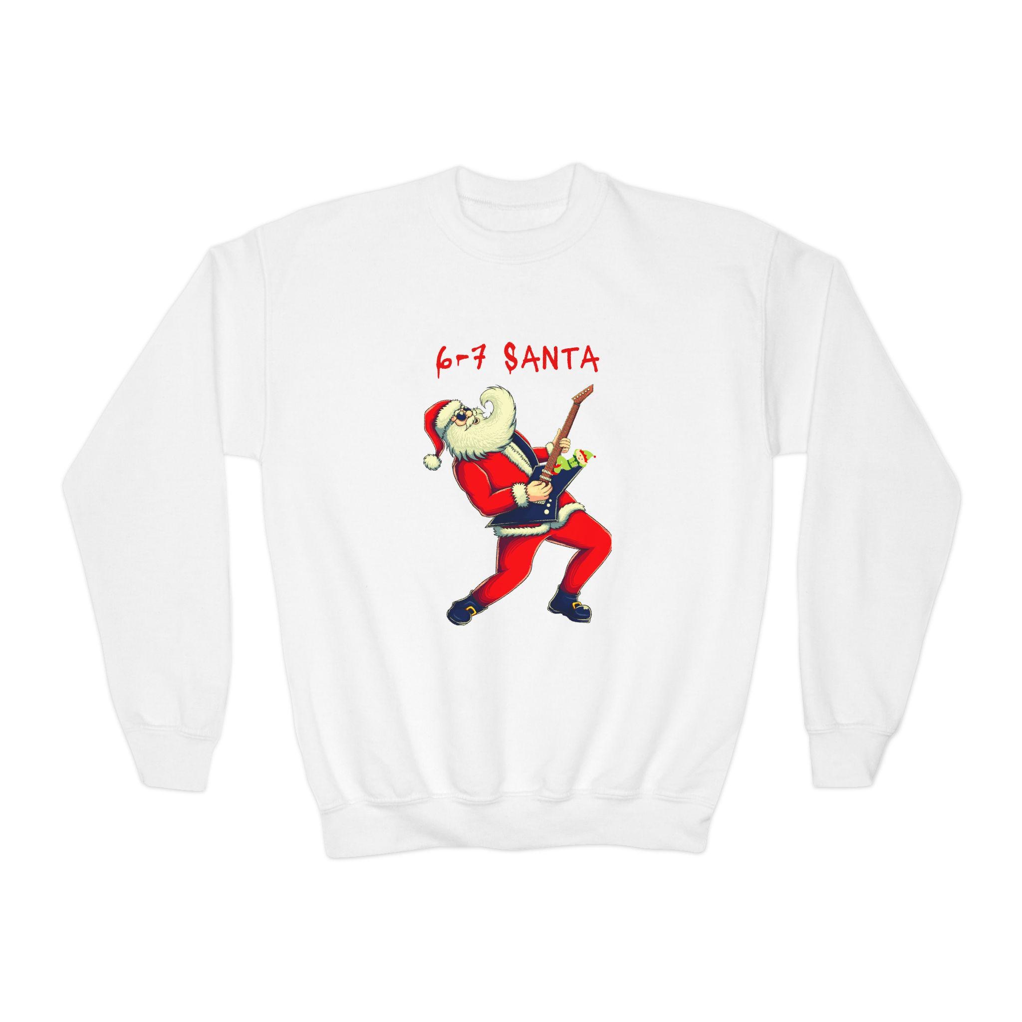 This cozy youth crewneck brings holiday mischief to chilly days. Soft yet sturdy midweight fabric holds its shape through play and wash cycles. A playful, vintage-style Santa illustration pops on the chest—Santa caught mid-dance with a bold “6-7 SANTA” headline—adding upbeat, cheeky personality to school concerts, family photos, or cocoa-by-the-fire evenings. The loose fit and ribbed collar keep movement easy for active kids, while tear-away labeling ensures itch-free comfort. Embroidery placement options allow a textured, heirloom feel for a keepsake version of the design.
