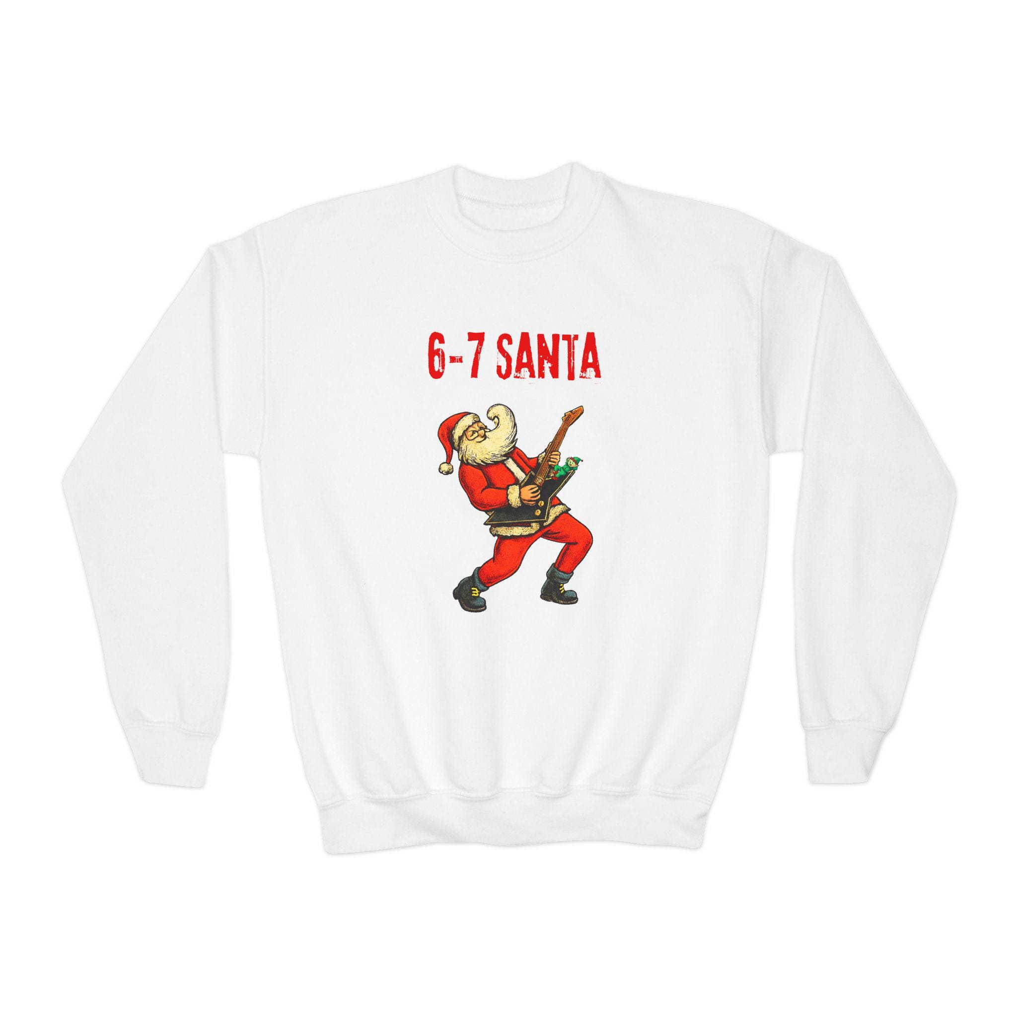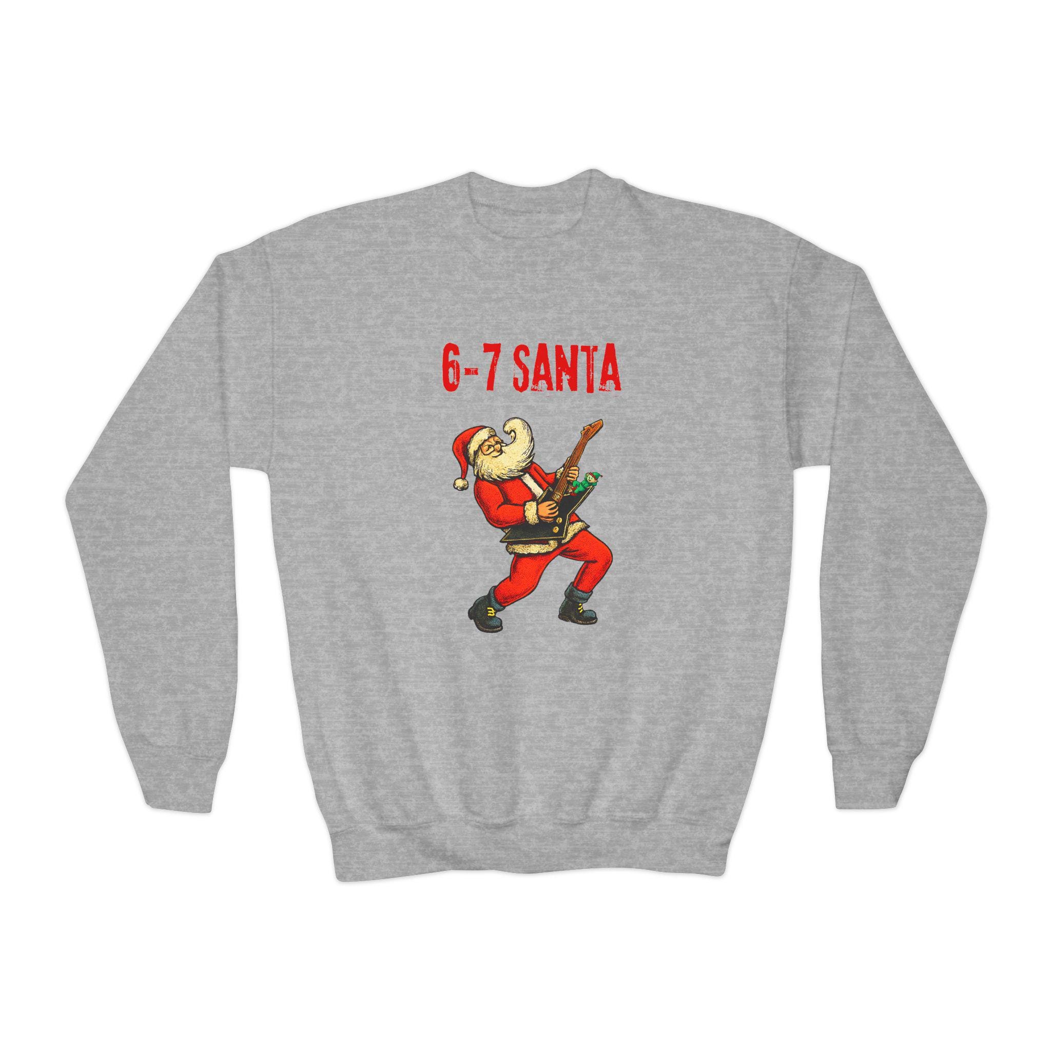 This cozy youth crewneck brings holiday mischief to chilly days. Soft yet sturdy midweight fabric holds its shape through play and wash cycles. A playful, vintage-style Santa illustration pops on the chest—Santa caught mid-dance with a bold “6-7 SANTA” headline—adding upbeat, cheeky personality to school concerts, family photos, or cocoa-by-the-fire evenings. The loose fit and ribbed collar keep movement easy for active kids, while tear-away labeling ensures itch-free comfort. Embroidery placement options allow a textured, heirloom feel for a keepsake version of the design.