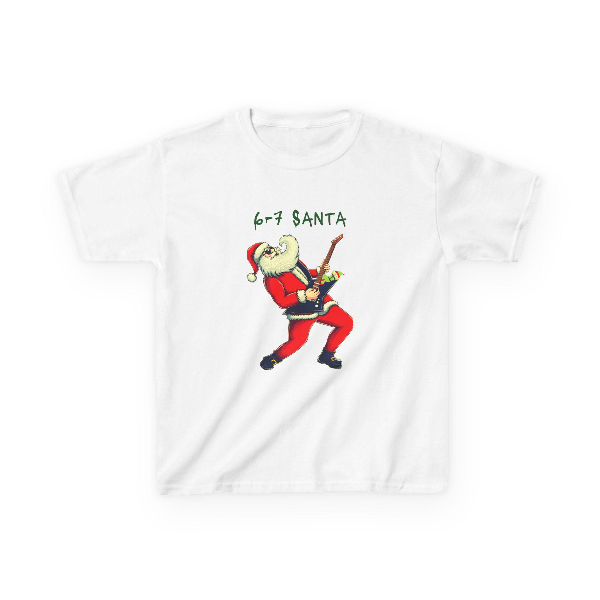 Small hands, big holiday attitude. This soft, midweight kids tee features a playful Santa mid-guitar-solo and the cheeky text “6-7 SANTA” above — a little rebel twist on seasonal cheer. The crew neck and classic cut sit comfortably for everyday play, while breathable US cotton keeps kids happy from school concerts to family gatherings. The printed label and smooth, tubular knit mean no itchy seams, so they can jump, dance, and rock around the tree without fuss. Lightweight enough for layering under a cozy hoodie, this shirt brings festive energy and a wink of humor to winter moments.