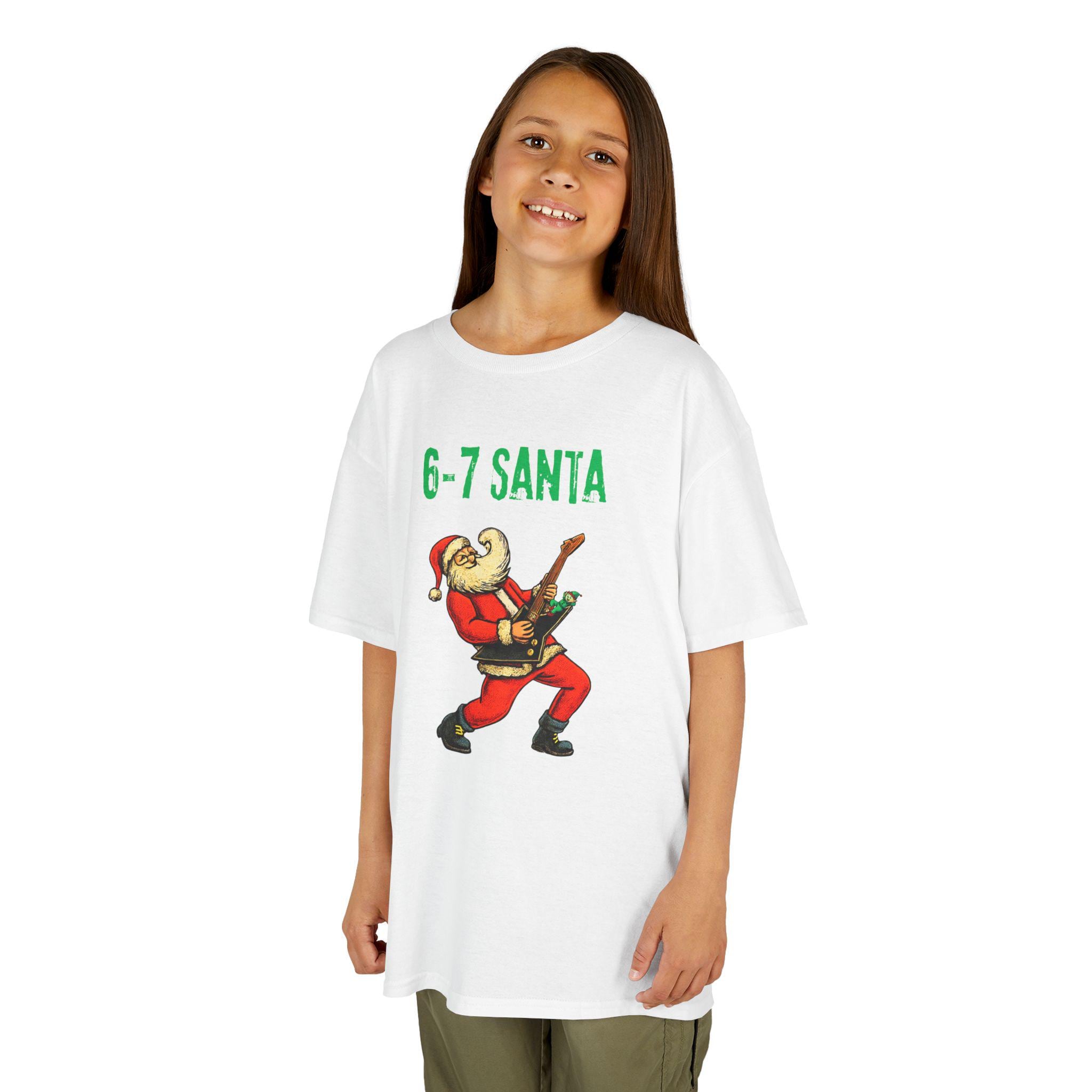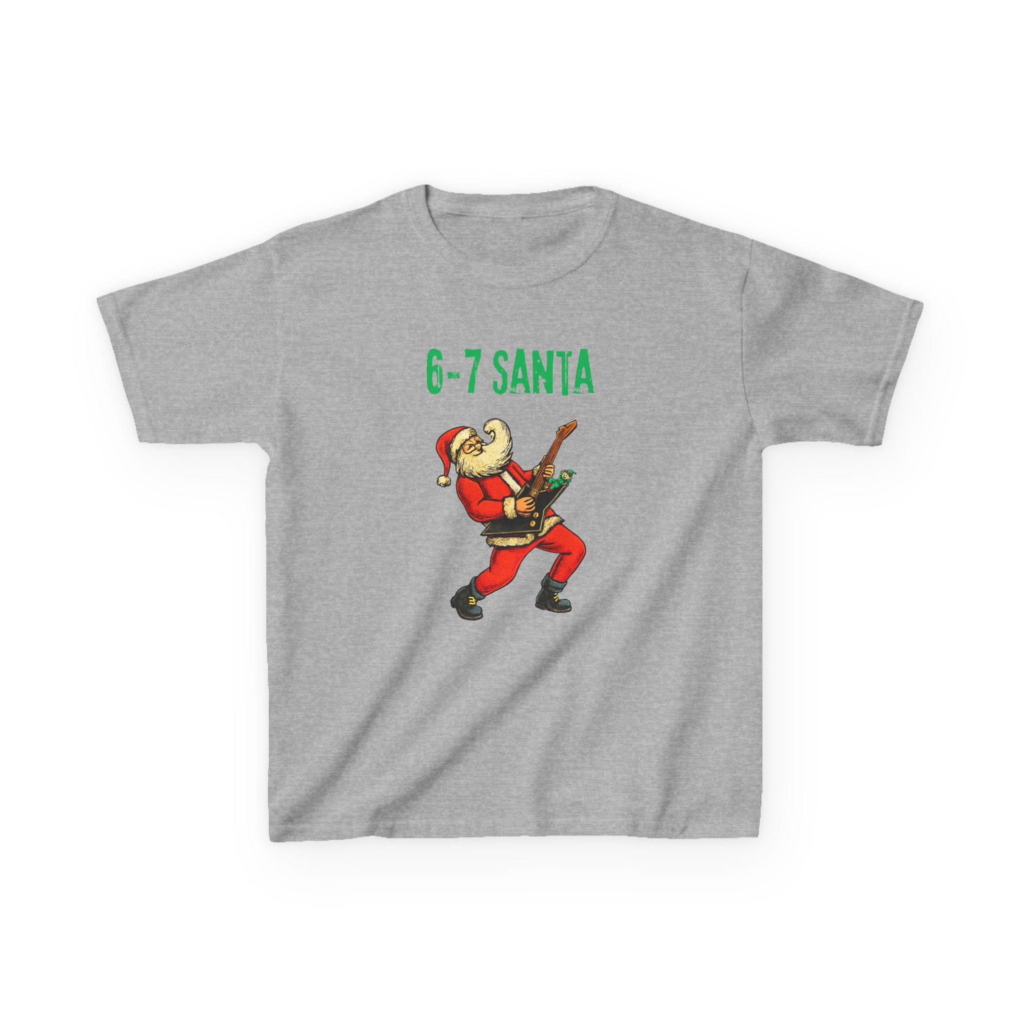 Small hands, big holiday attitude. This soft, midweight kids tee features a playful Santa mid-guitar-solo and the cheeky text “6-7 SANTA” above — a little rebel twist on seasonal cheer. The crew neck and classic cut sit comfortably for everyday play, while breathable US cotton keeps kids happy from school concerts to family gatherings. The printed label and smooth, tubular knit mean no itchy seams, so they can jump, dance, and rock around the tree without fuss. Lightweight enough for layering under a cozy hoodie, this shirt brings festive energy and a wink of humor to winter moments.