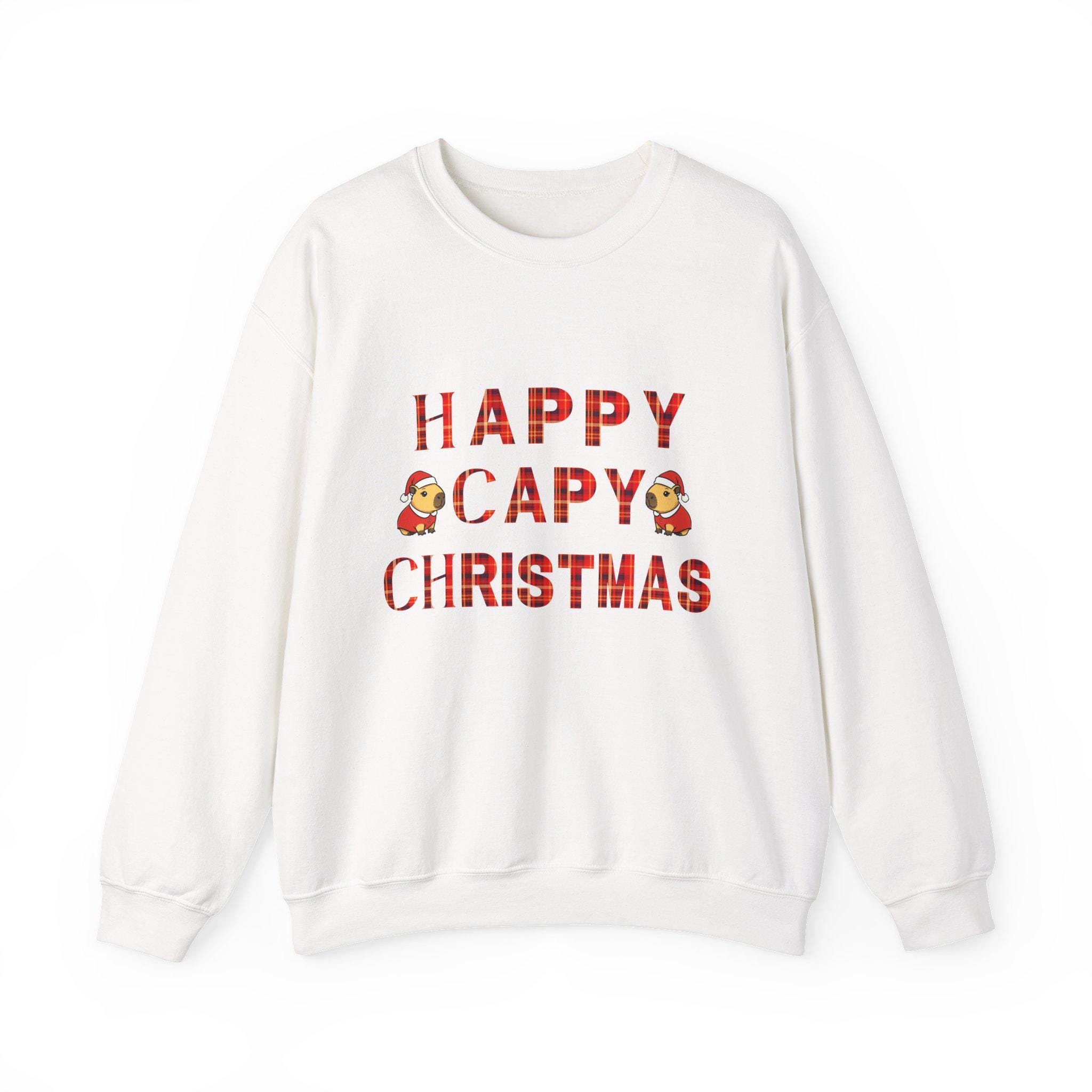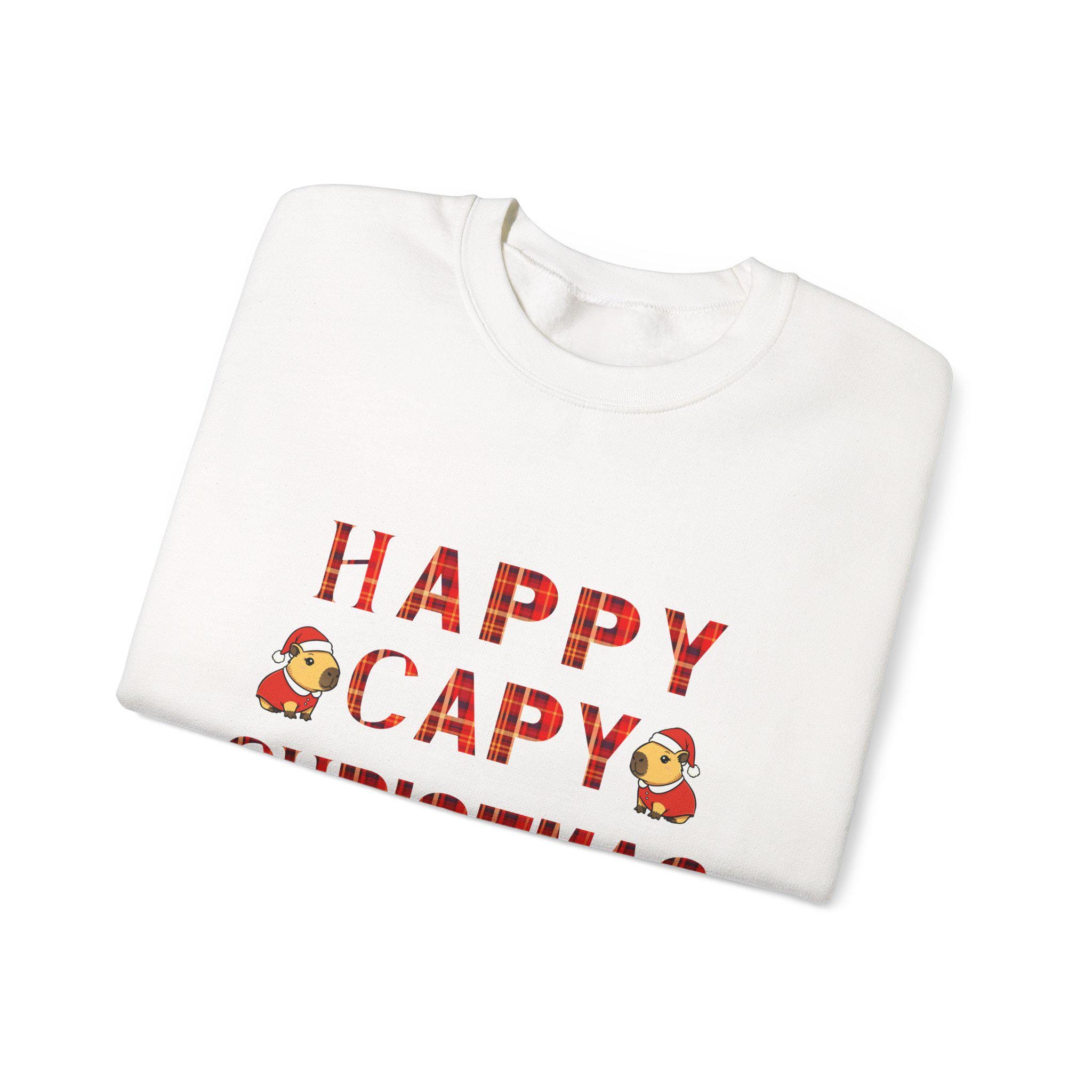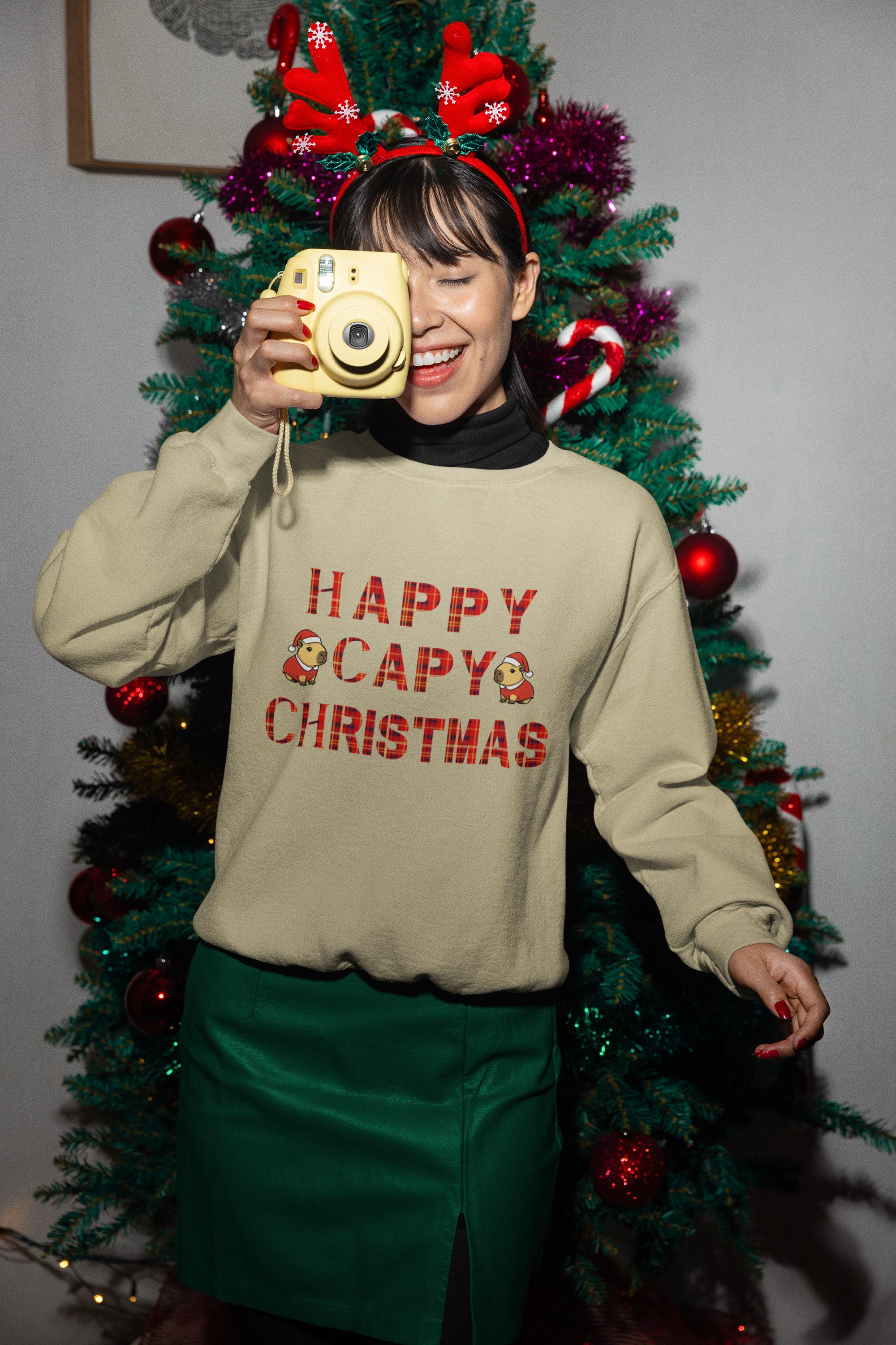 A warm, cozy crewneck that brings a playful holiday grin to quiet mornings and crowded family rooms alike. Soft, medium-heavy fabric and a classic cut keep the silhouette familiar and comfortable — something you can pull on for slow coffee, last-minute errands, or leaning into laughter at a festive get-together. The graphic reads like a cheeky holiday greeting, its candy-cane–style letters and small capybara icons offering a lighthearted twist on seasonal cheer. Durable double-needle stitching and a tear-away label keep comfort long after the holidays, while thoughtful production standards mean you’re wearing a piece made with safer dyes and responsibly sourced cotton. Wear it for cozy evenings by the tree, casual holiday parties, or anytime you want a subtle, smile-worthy seasonal touch.