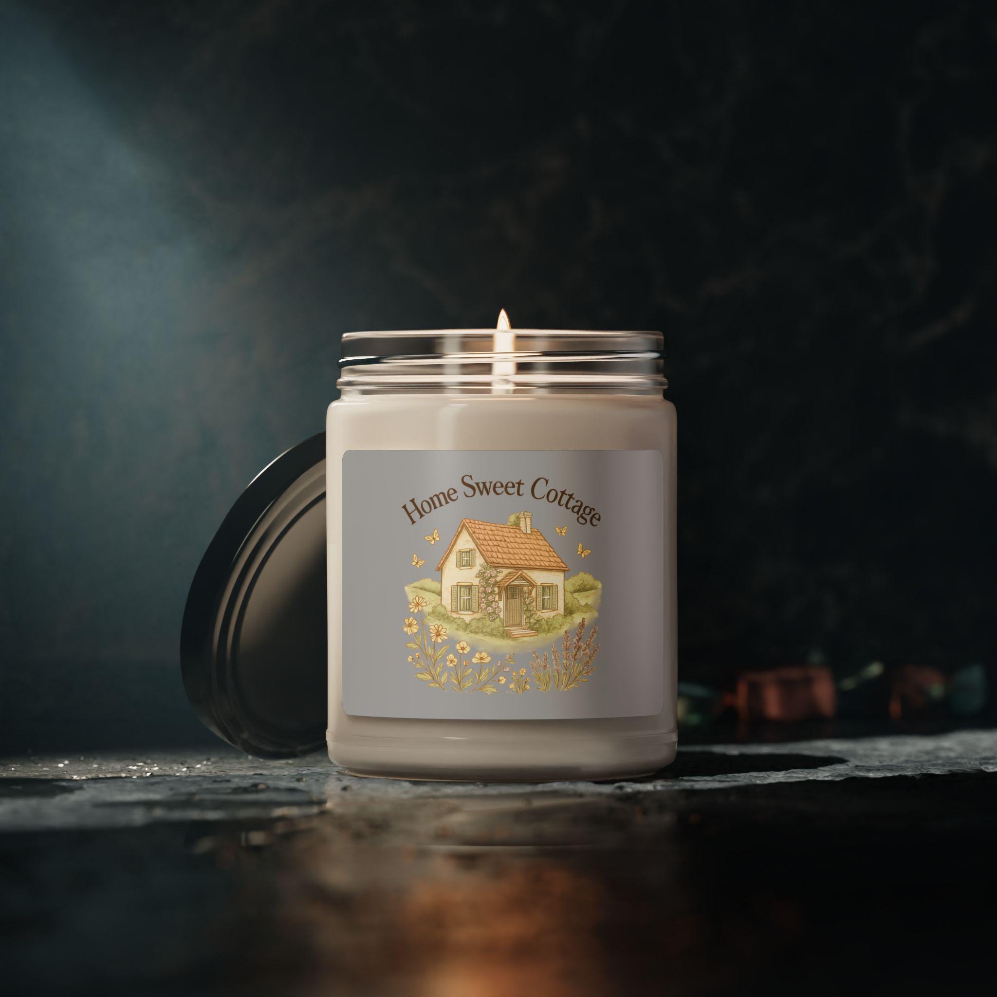 Light this 9oz soy candle and let the room soften into something gentle and familiar. Poured from a natural soy blend with a cotton wick, it burns clean for 50–60 hours in a reusable glass jar that becomes part of your shelf, windowsill, or bedside vignette. Choose from a curated selection of twelve scents — from warm Cinnamon Vanilla and Apple Harvest to airy Sea Salt + Orchid or calming White Sage + Lavender — each blended with natural essential oils to layer atmosphere without overwhelming the senses. The glossy permanent label features a cozy cottage illustration that invites slow evenings, quiet reading, and ritual moments. Assembled in the USA to ASTM safety standards, this candle brings an uncomplicated, sustainable glow to everyday routines and seasonal gatherings.