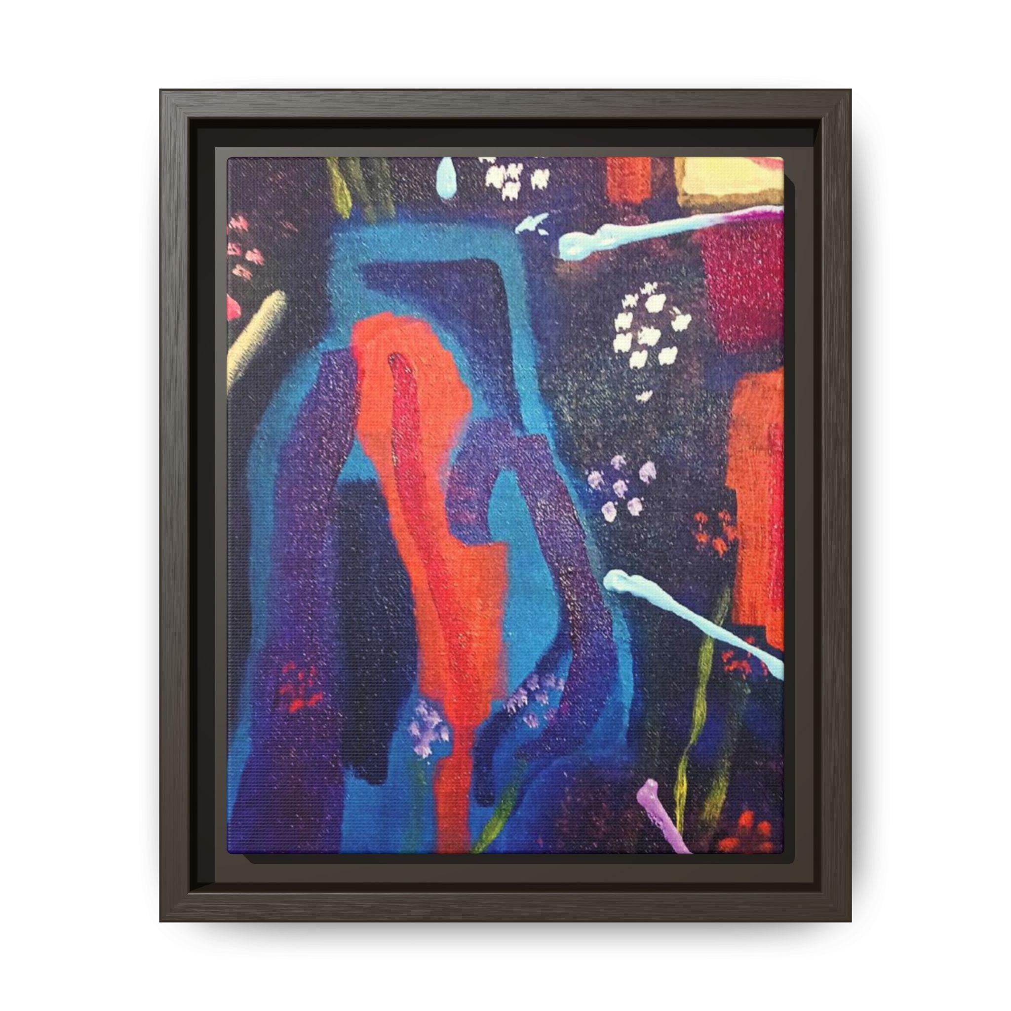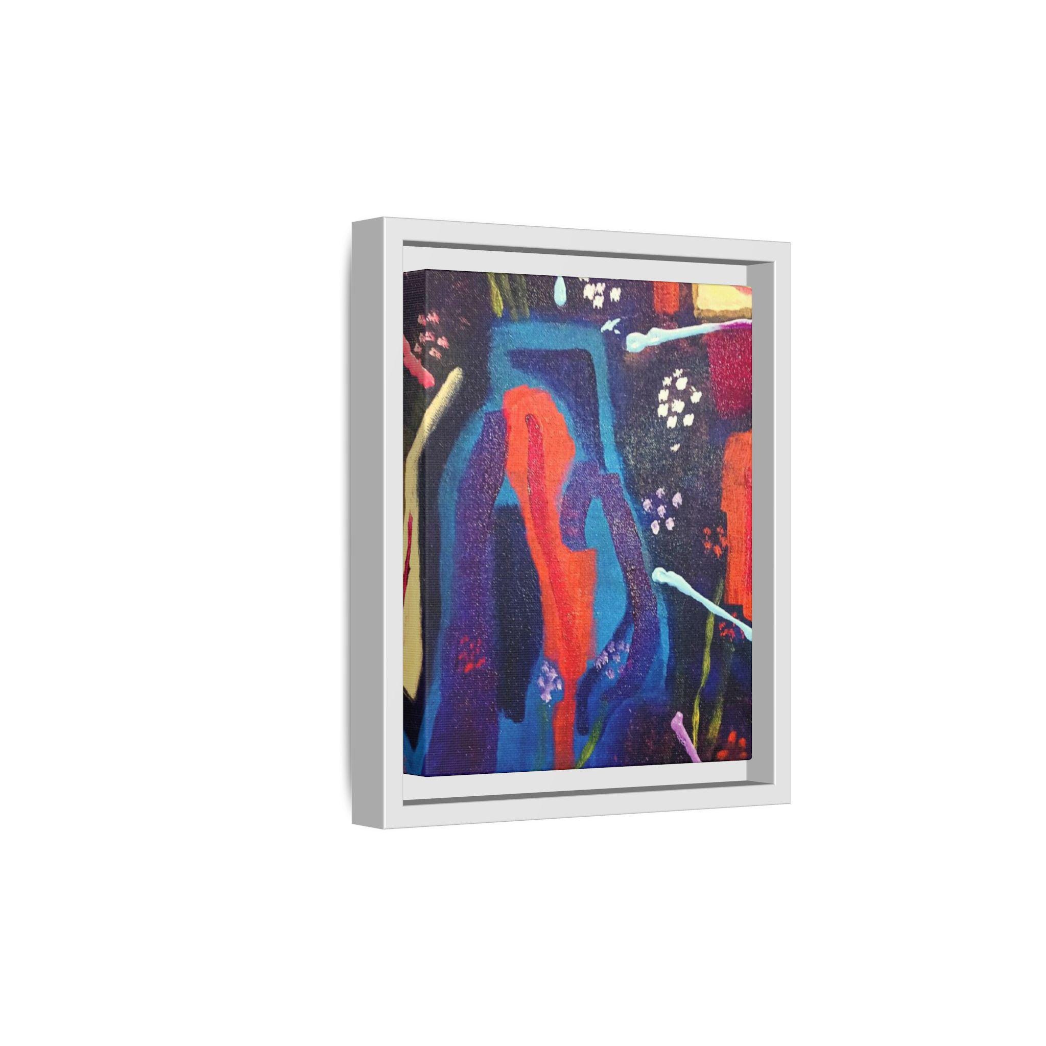 This print is from an original abstract painting by jjackson and is part of our jjlimeartdesigns collection. The bold, textured color meets sustainable craftsmanship in this matte canvas framed print. Rich blues, fiery oranges, and playful splashes of color sit on a subtly grained surface that soaks up light without glare. The slim pine frame in a choice of finishes gives the piece a modern, gallery-ready presence while the durable canvas and archival latex inks keep the palette vivid for years. Hang it in a living room, studio, or hallway to add movement and warmth—this is the kind of artwork that starts conversations and livens a quiet wall without shouting.