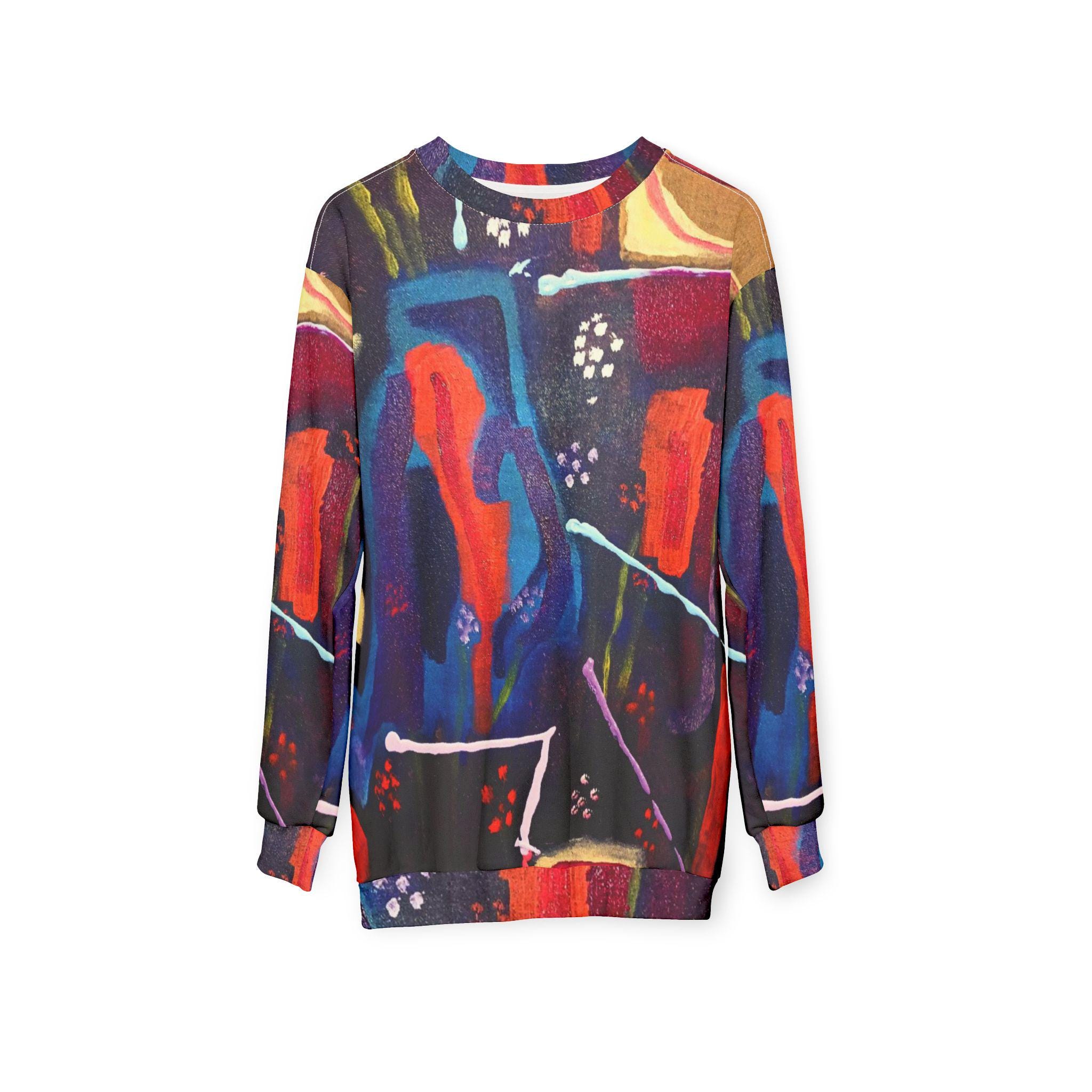 This vibrant all-over print sweatshirt featuring original abstract art from jjlimeartdesins artist. The saturated colors and layered brushstrokes feel like stepping into a downtown gallery — alive, textural, and slightly rebellious. Medium-weight polyester holds the shape and color so the artwork reads clearly whether you’re layering it under a coat or wearing it solo on a crisp morning. The classic crew silhouette and ribbed-knit cuffs keep the look grounded while the custom cut-and-sewn print means the composition shifts across sleeves and torso, so each piece reads like a wearable canvas. Slip it on to brighten a coffee run, anchor a creative weekend, or add a splash of color to city evenings.