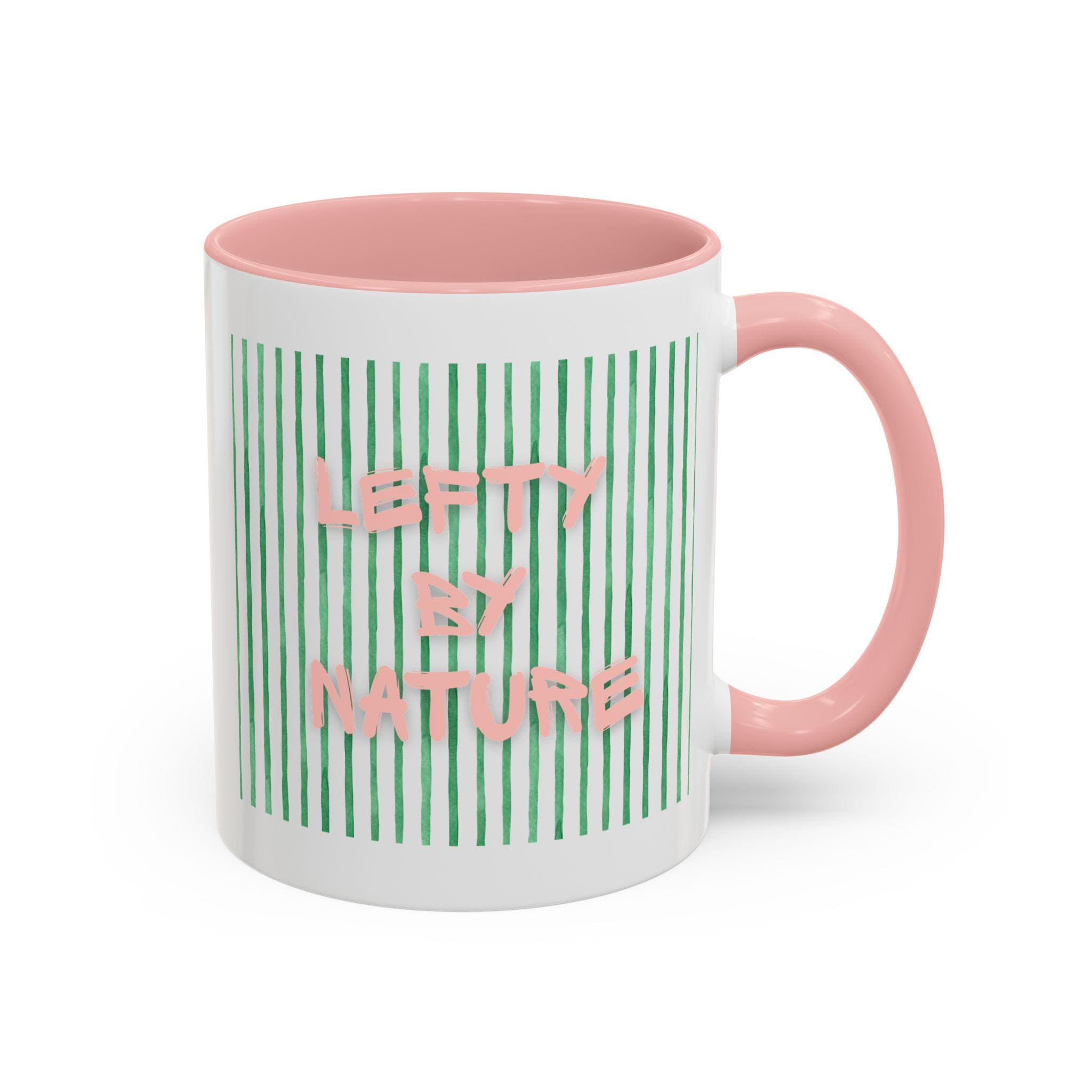 Morning light filtering through a window, a slow sip, and the hush of green—this ceramic mug brings a gentle, plant-forward moment to everyday routines. Soft pink lettering floats over narrow vertical green stripes, evoking a small, sunny garden and the calm of tending to houseplants. The colored interior and handle add a pop of contrast that feels deliberately curated, like a favorite pot on a shelf. It’s steady in the hand with a classic C-shaped handle and a glossy finish that highlights the print. Use it for the coffee you nurse between emails, the tea you cradle on quiet mornings, or to hold pens on a desk where ideas grow.