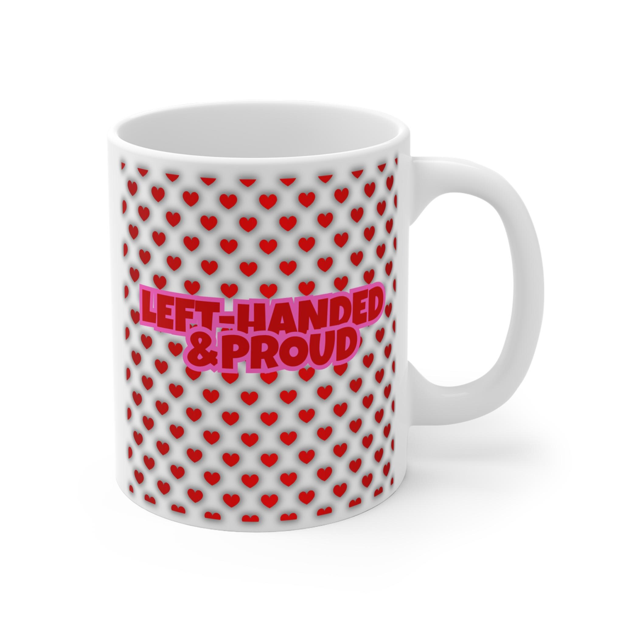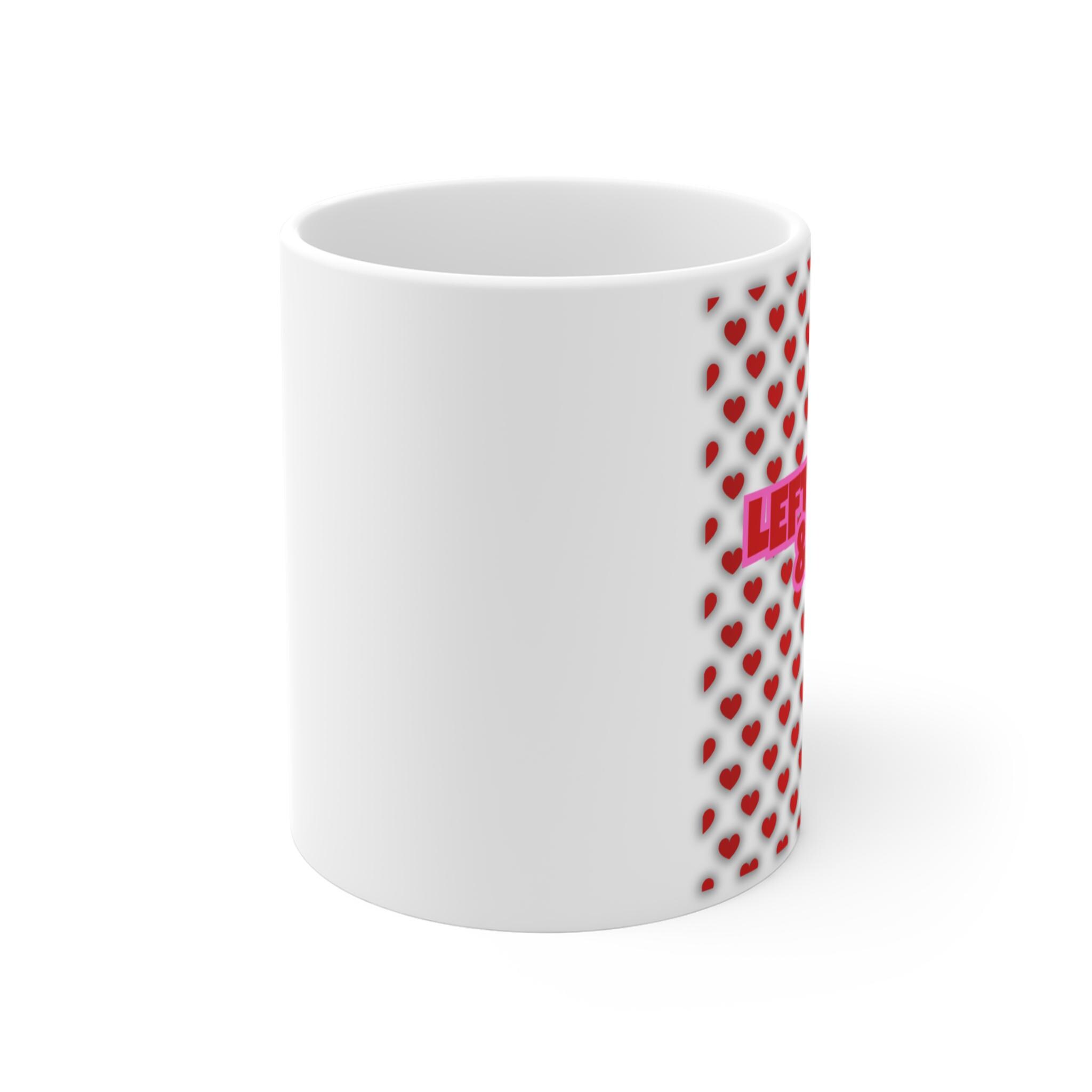 This 11oz white ceramic mug brings a quiet pop of playful charm to everyday sips. The design wraps along the side with a column of small, warm-red hearts that peek from the rim to the base, giving the mug a cozy, handmade feel. It’s a small, sweet companion for morning coffee, late-night tea, or a desk-side cocoa break — the kind of object that makes ordinary moments feel a little closer and more personal. Lightweight and smooth to hold, the rounded shape and C-handle invite slow, comfortable sipping while the bright accent pattern adds a gentle, affectionate note to your routine or to a heartfelt celebration between friends and loved ones.