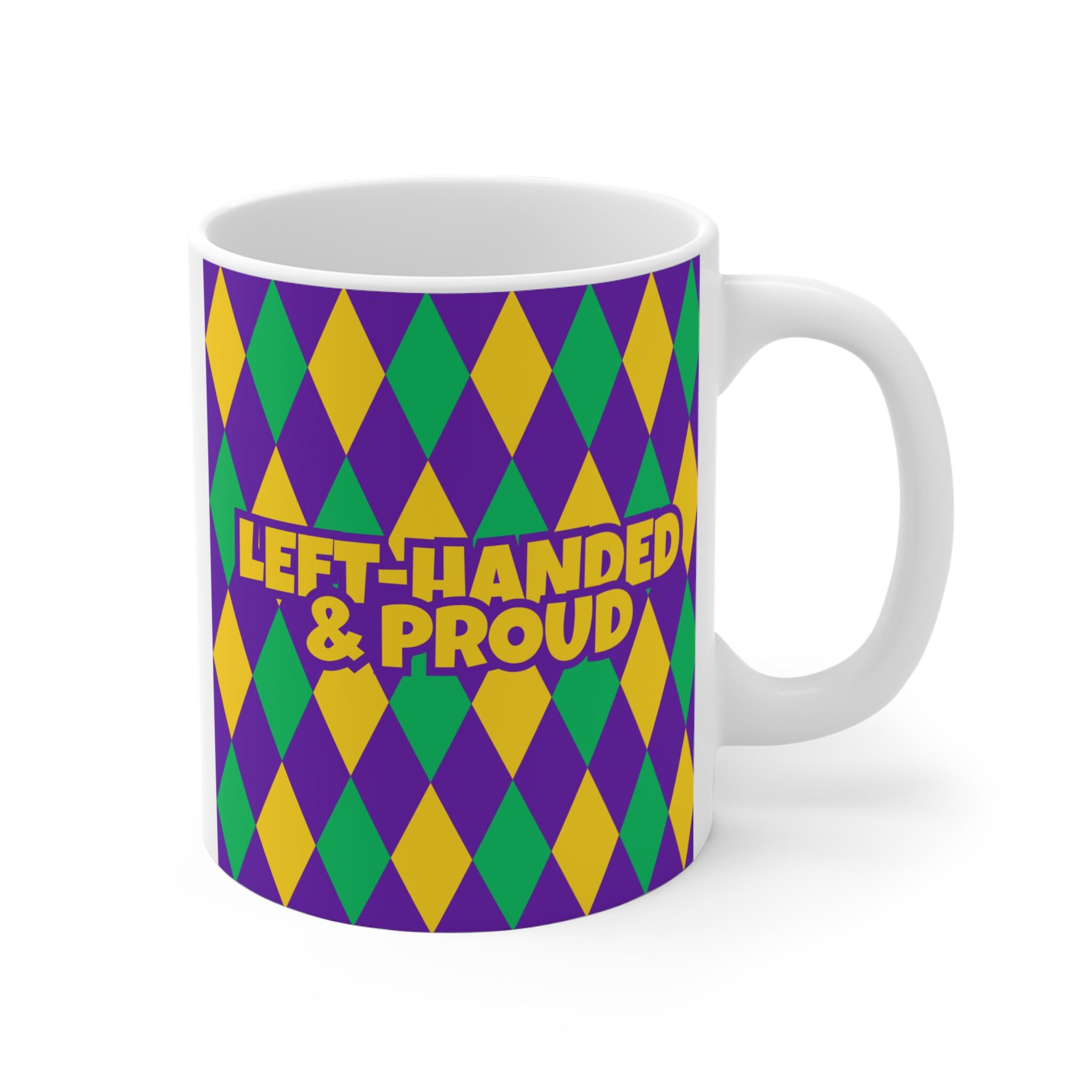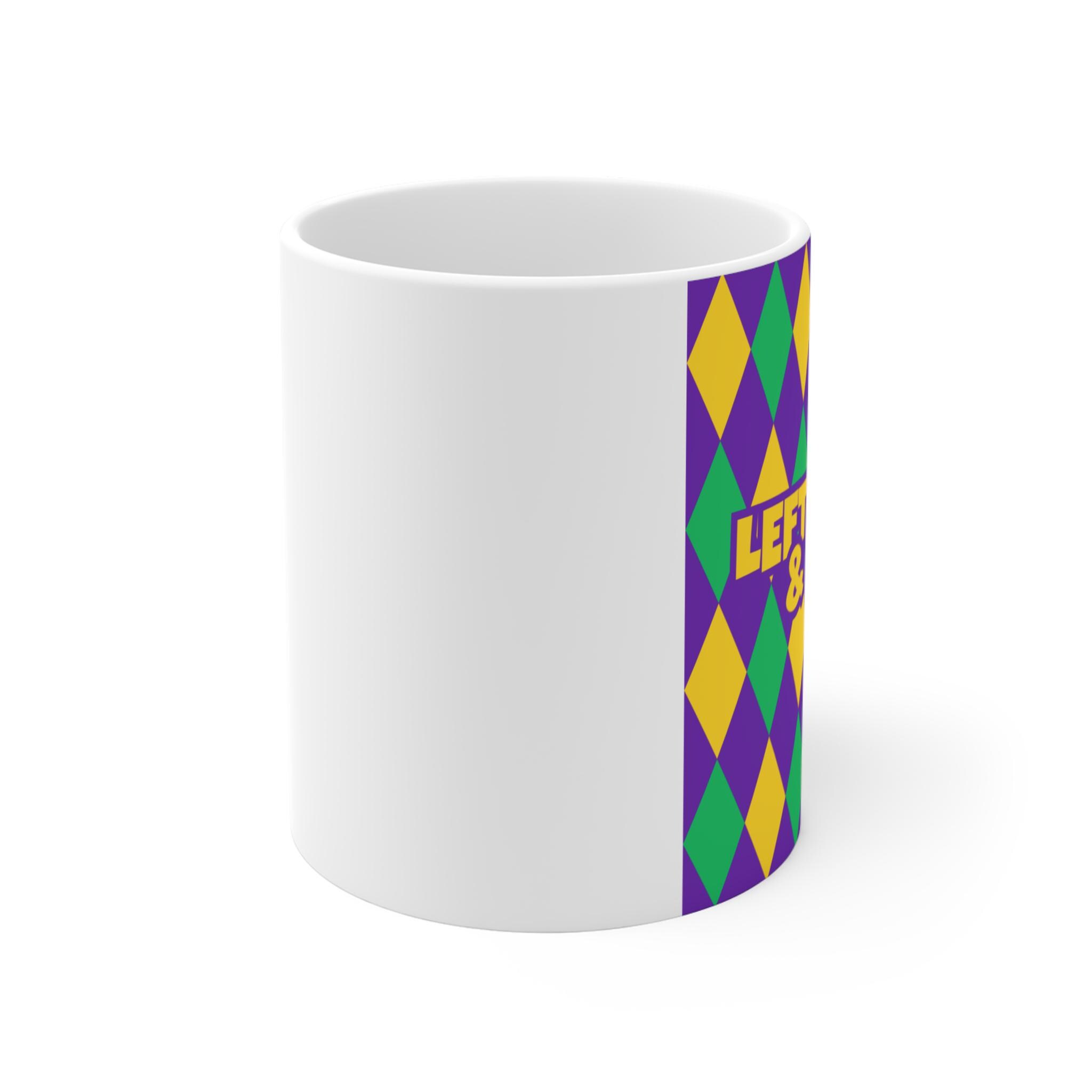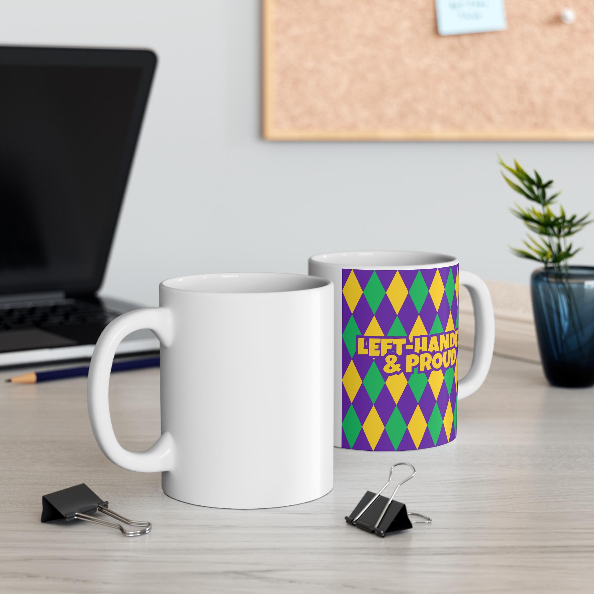 Bright, lively, and unapologetically festive — this 11oz white ceramic mug brings a playful splash of color to your morning routine. The design panel features a bold harlequin pattern in purple, green, and gold that evokes street-parade energy and jubilant gatherings. Lightweight with a comfortable C-handle, the mug feels familiar and easy to hold while you sip coffee, tea, or cocoa. Durable enough for daily use, it slips into the microwave and dishwasher without worry and is made from lead- and BPA-free materials for safe, everyday enjoyment. Keep it on the counter to brighten up slow mornings, use it during celebratory brunches, or let it stand out among your collection as a small celebration starter.